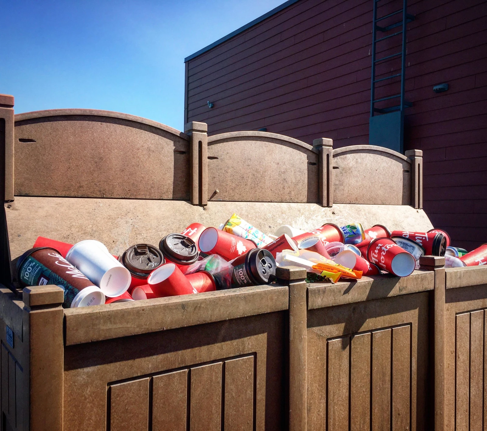 Avant de reprendre la route, je vais me chercher un café au service à l’auto de la succursale Tim Hortons à l’entrée de la ville. En voyant les chaises sur les tables dans la salle à manger fermée aux clients et les poubelles du restaurant qui débordent à l’extérieur, je me suis dit comme Tanya que le le vernis de normalité s’écaillait un peu plus sur notre quotidien.