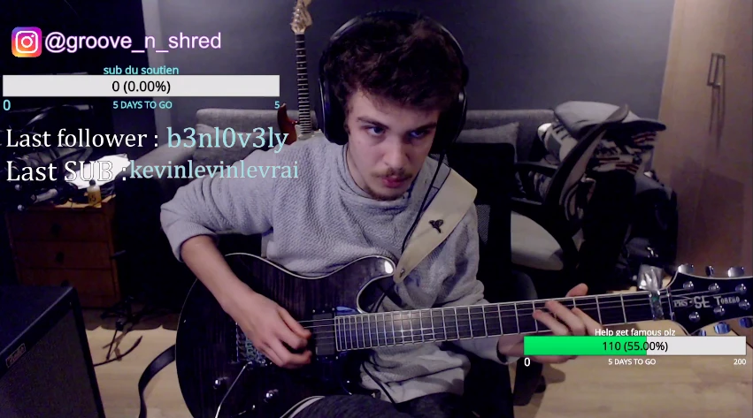 La plus grande foule devant laquelle Mamoun a démontré l’étendue de ses talents (nous vous méprenez pas, il EST très talentueux) est de 16 personnes, lors d’un raid par une plus grande chaîne de musique. Il s’agit d’une pratique selon laquelle une chaîne Twitch qui finit sa session quotidienne invite ses spectateurs à aller regarder la diffusion en cours d’une plus petite chaîne. Les petites foules ne le dérangent pas, cependant. «C’est une manière pour moi de me faire connaître comme guitariste. De partager ce que je fais avec les gens. Twitch n’est pas une fin en soi.»