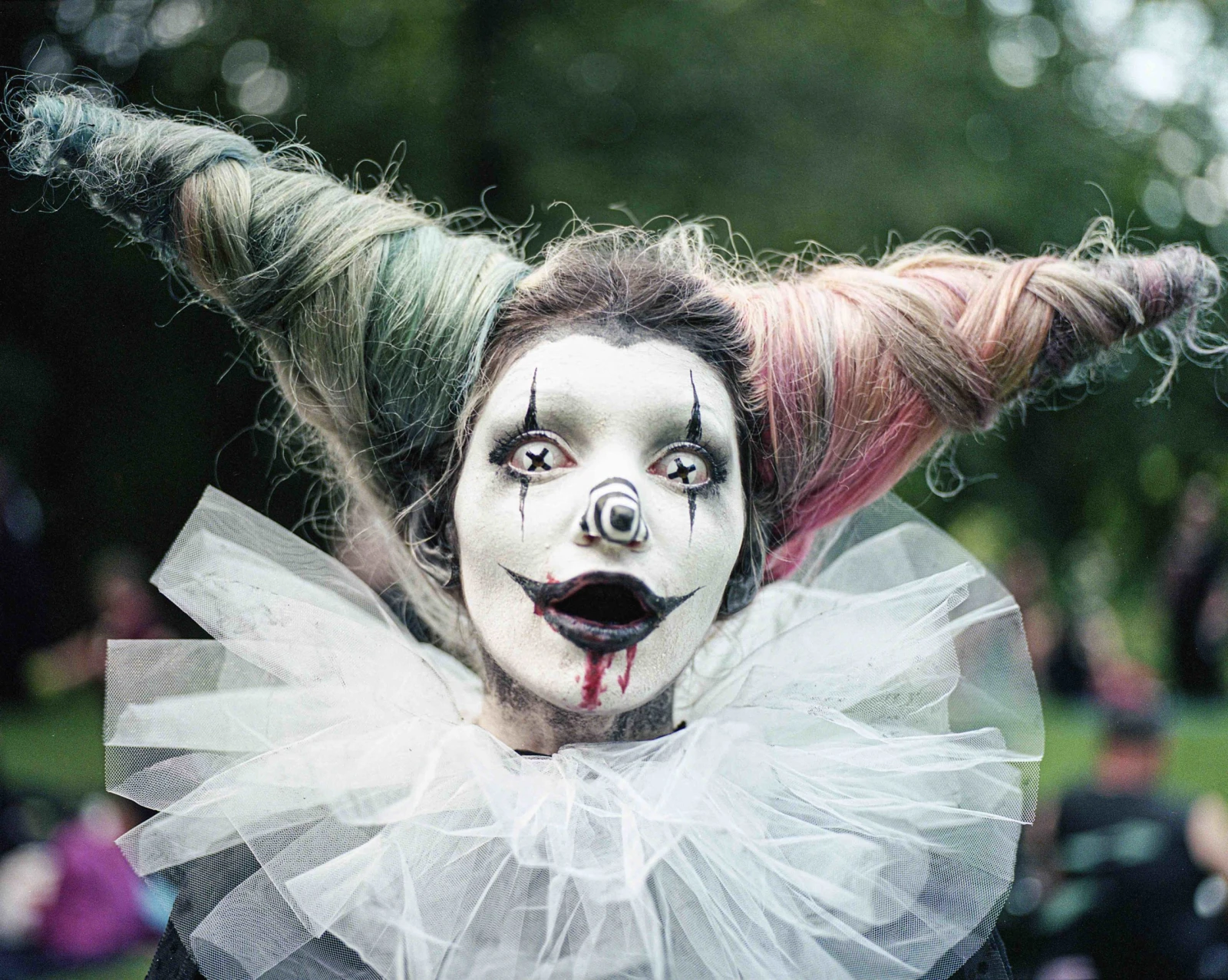 Maquillages étudiés, lentilles colorées, chapeaux haut-de-forme bricolés, la somme rassemblée dévoile un impressionnant souci du détail et exprime l’effort de nombreuses heures investies à fignoler leur présentation. Chaque individu est une mise en scène unique et le pique-nique, une grande parade. On y hume un parfum d’encens et celui d’une évidente fierté à poser devant mon objectif.
