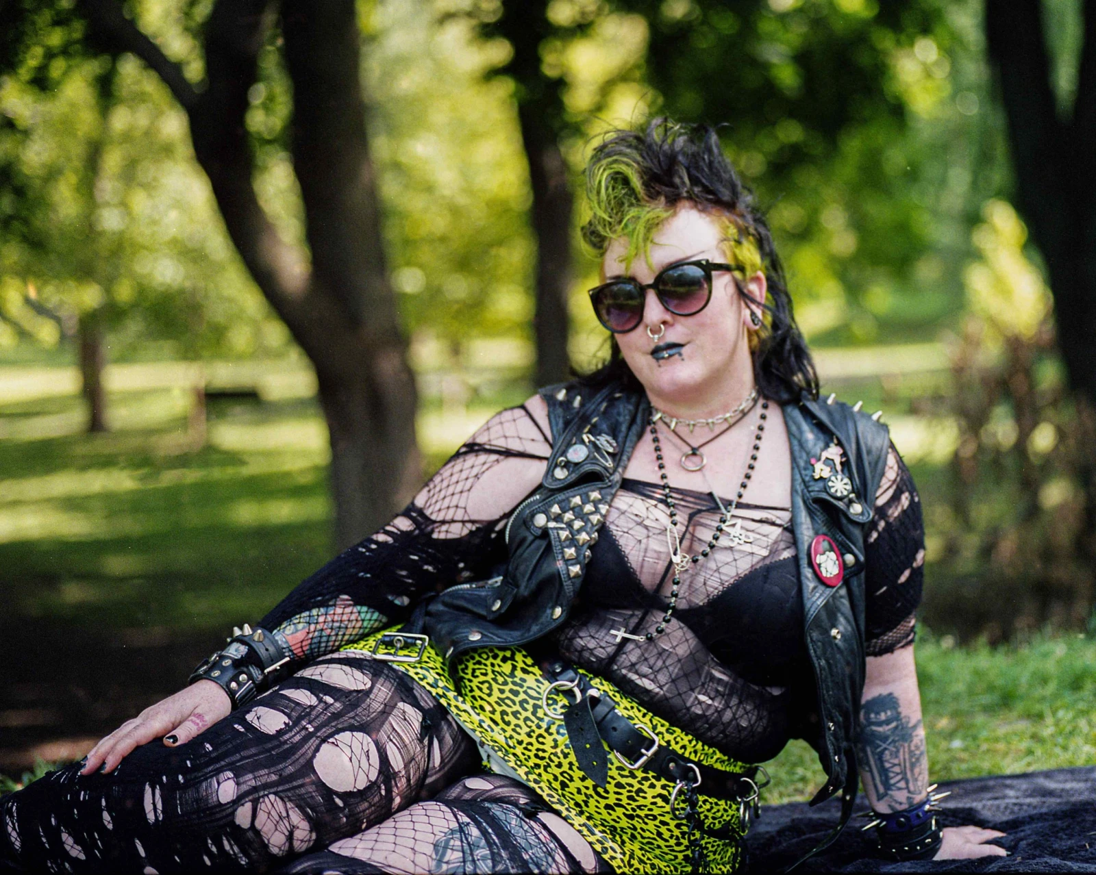 « Ma garde-robe est devenue pas mal noire à l’adolescence et elle n’a plus jamais changé. Ce qu’on fête avec ce pique-nique, c’est une mini-société en santé, une volonté de manifester sa différence, pour une fois ne pas être vue comme une extraterrestre, quoique ça fait partie du deal, mais entre nous, on respire toujours mieux », me dévoile Camille en replaçant son septum.