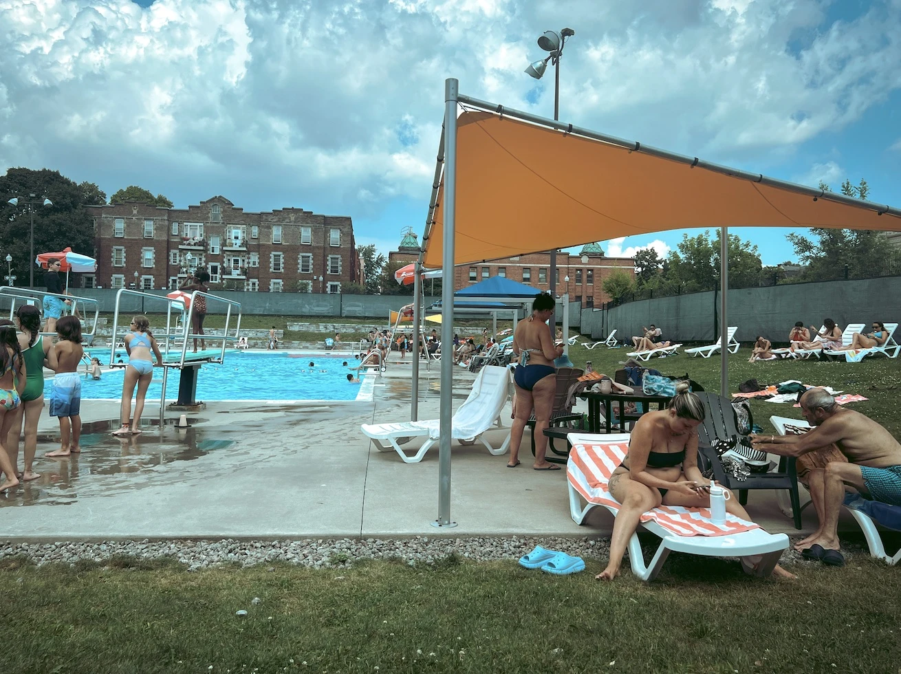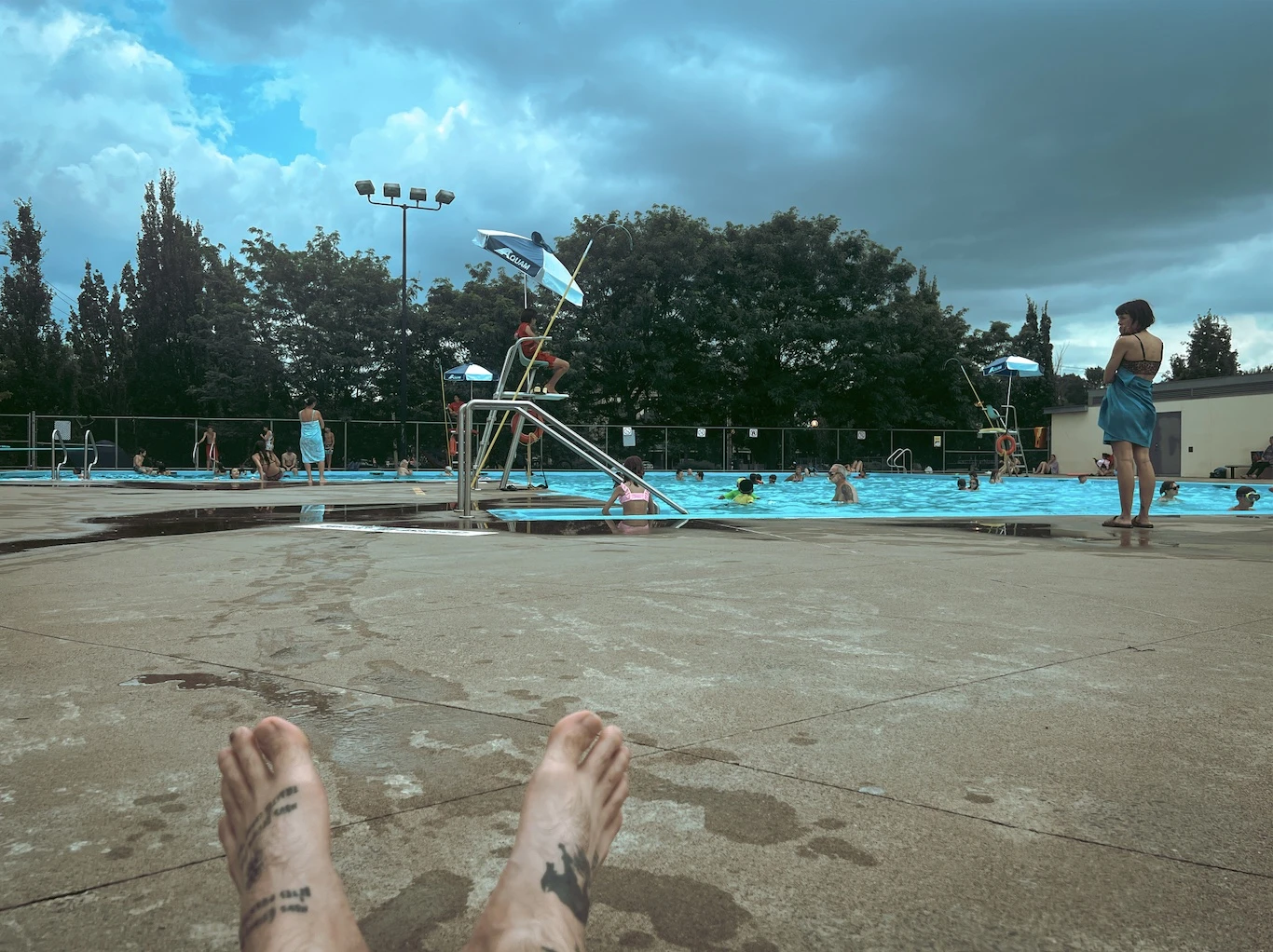Un enfant en surpoids se jette à l’eau, une bombe m’éclaboussant d’innocence. Nous brûlons sous le soleil, mais après tout, c’est l’été à Montréal et cet article a été écrit en bedaine.