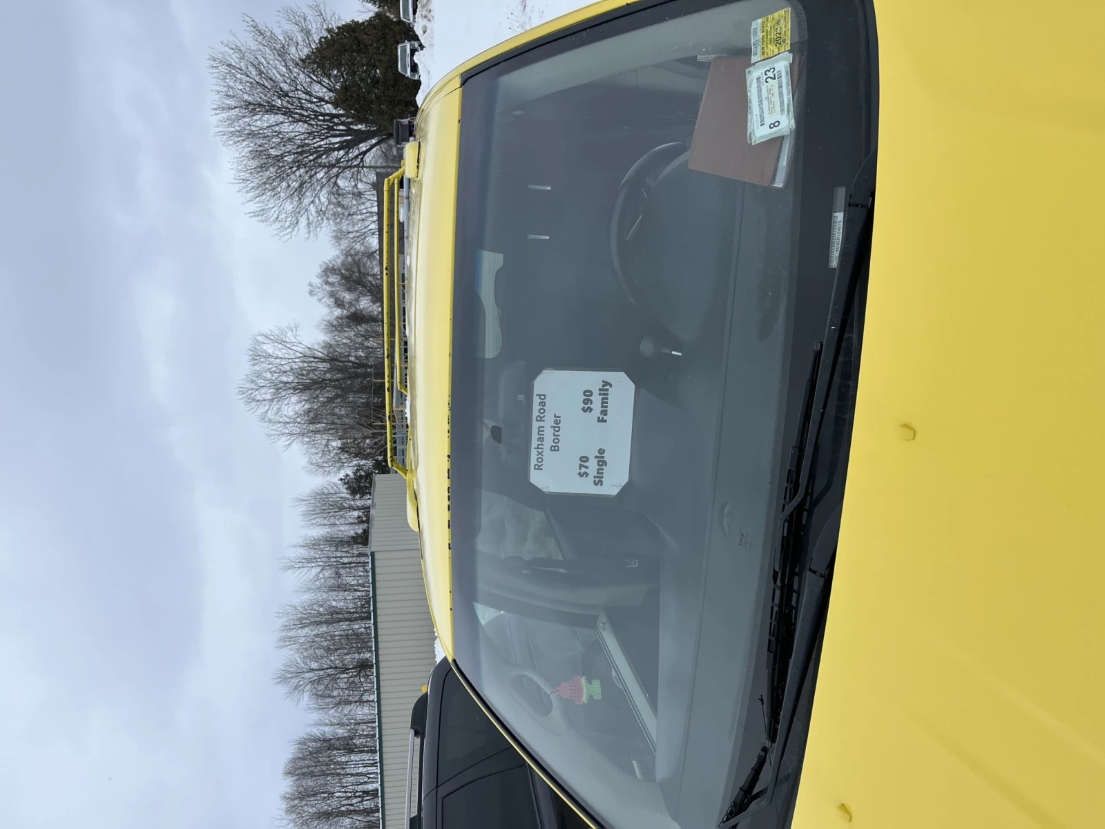 Au détour d’une pompe à essence, on tombe sur Tom, un chauffeur de taxi et vétéran de la place. « Je vais à l’aéroport pour transporter des gens jusqu’au chemin, après je reviens ici quand le bus arrive. Je fais ça 7 jours sur 7 depuis des années », indique l’homme à la moustache jaunie par la cigarette. Le gaillard de 68 ans interrompt son récit pour prendre quelque chose sur la banquette arrière et me montre une affiche en plastique indiquant les tarifs pour une course depuis la station-service jusqu’aux lignes. Il la colle ensuite dans son pare-brise : 70 $ pour une personne seule, 90 $ pour une famille.