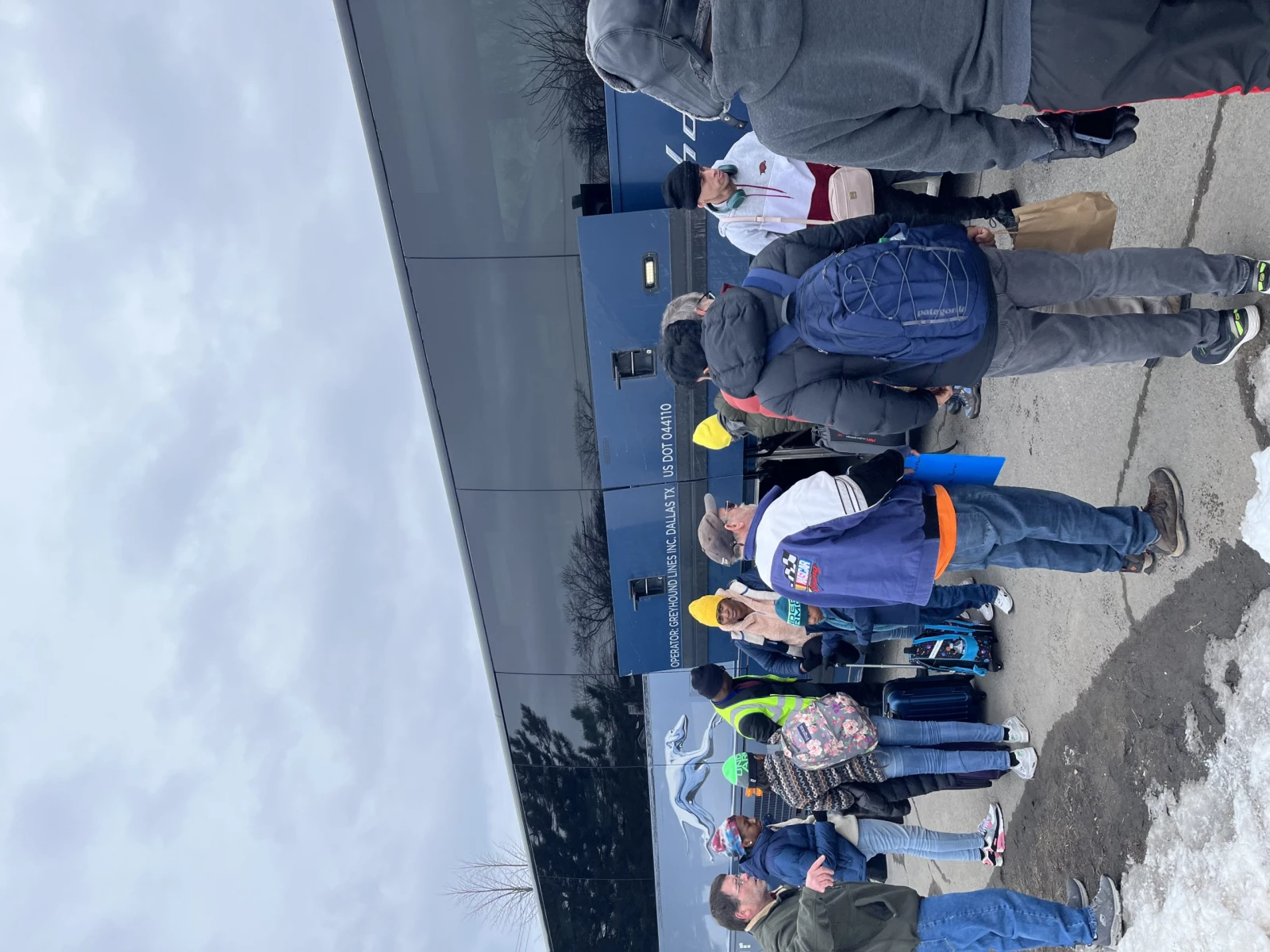 Le chauffeur a seulement le temps de m’expliquer qu’il reconduit des migrants jusqu’à Roxham depuis sept ans et que la compétition est rude avec les autres transporteurs avant que son regard ne bifurque au-dessus de mon épaule. « Oh! It’s coming! » Je me retourne alors pour constater que l’autobus Greyhound en provenance de New York prévu pour 15h est déjà arrivé. « Here we go! », lance Tommy avant de filer vers le bus, à l’instar de ses collègues.