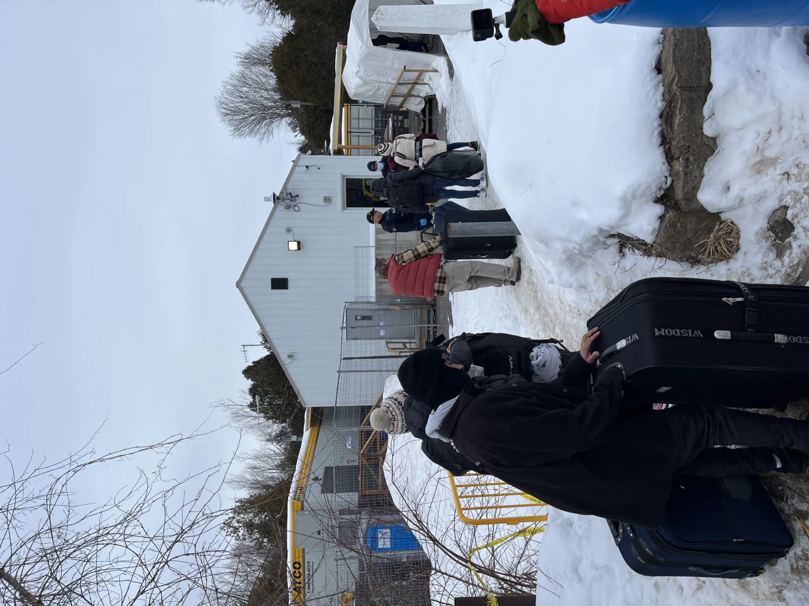 Ernesto, affublé d’un coton ouaté beaucoup trop mince pour réchauffer son corps frêle, accepte de nous parler plus tard, mais pour l’heure, il tente tant bien que mal de gérer la fin de voyage de son clan vers Roxham. Un brin submergée par l’accent vénézuélien et les questions de Tom, Gabrielle réussit tout de même à arranger la suite des choses pour Ernesto et sa famille. Le père, la mère et leurs deux enfants iront avec Tom et le cousin, sa femme et une autre femme qui s’est greffée à la bande iront dans les places disponibles d’un second taxi.