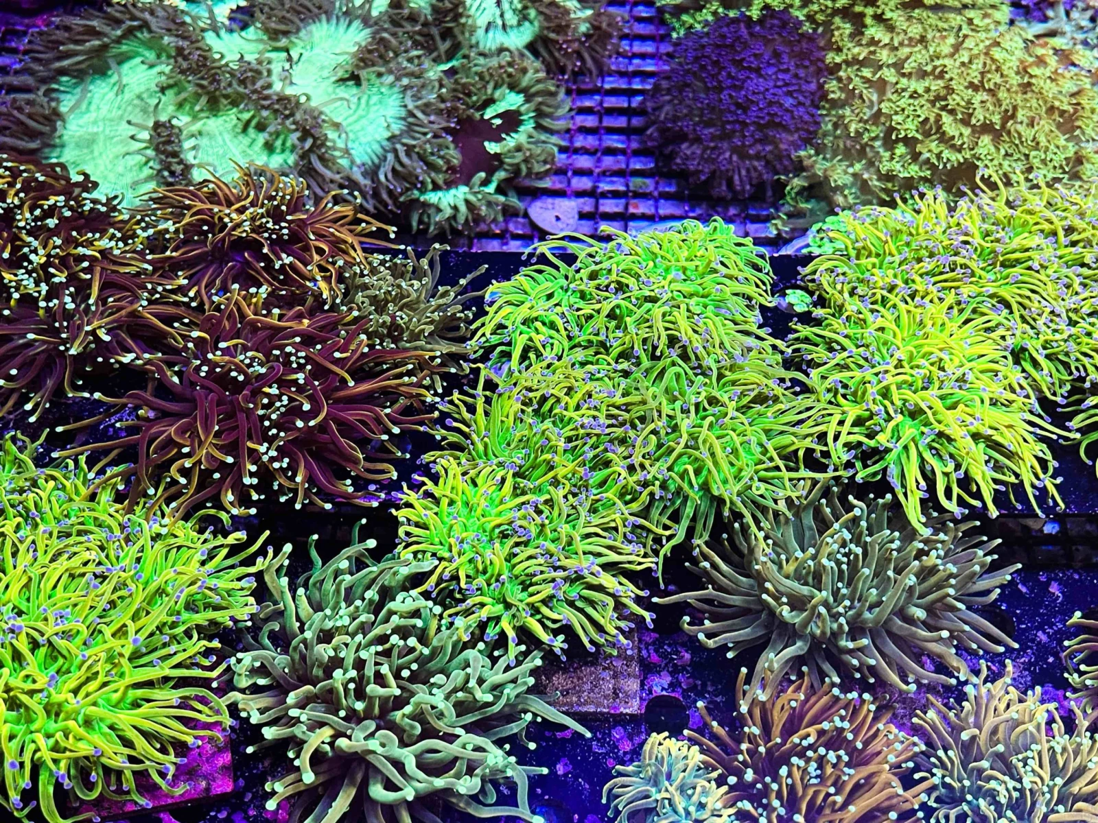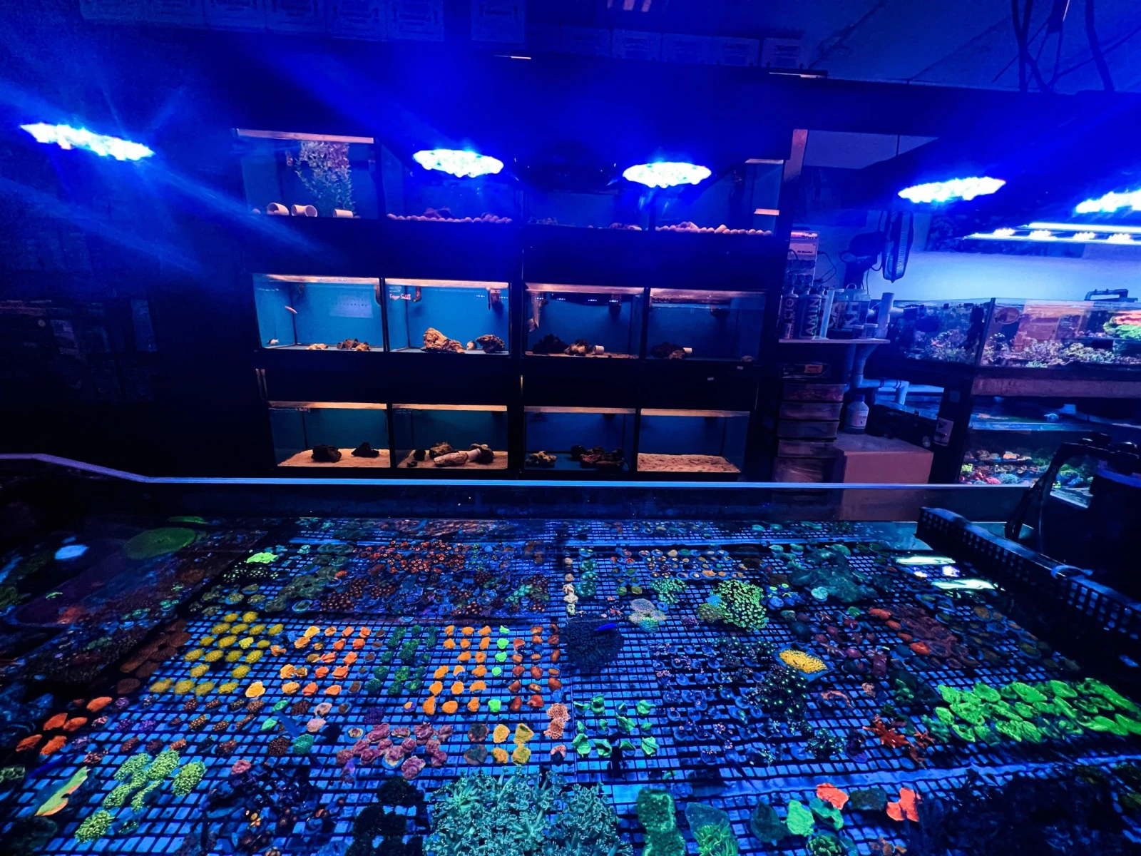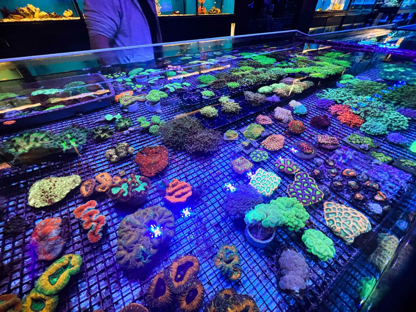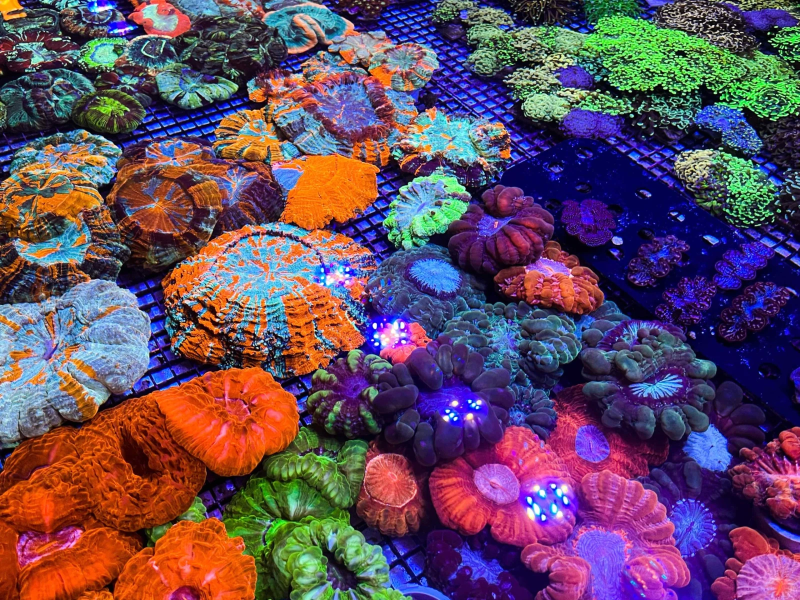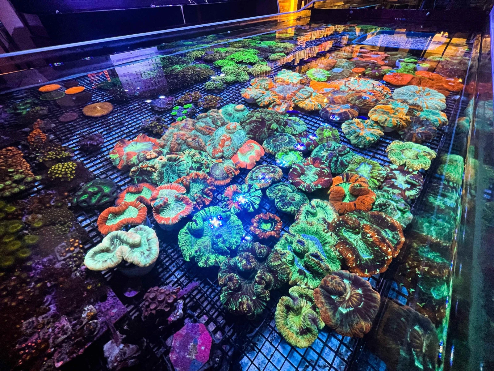 L’atmosphère visuelle psychédélique de la boutique est d’ailleurs assurée par un éclairage UV bleuté permettant de rehausser les couleurs naturelles de la zooxanthelle, cette algue qui arbore les coraux et projette ses teintes fluorescentes.