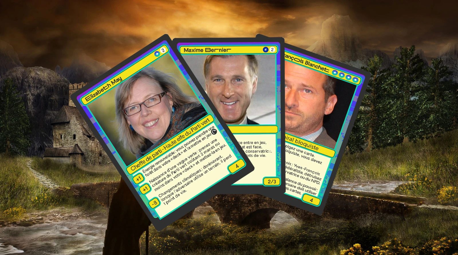 Ce deck regroupe donc notamment des membres du Parti vert, du Bloc québécois et du PPC, qui vont exceptionnellement se battre ensemble contre les libéraux, les conservateurs et les néo-démocrates. Non, ça n’arriverait pas dans la vraie vie, mais on est dans un jeu de cartes, pas dans la vraie vie.
