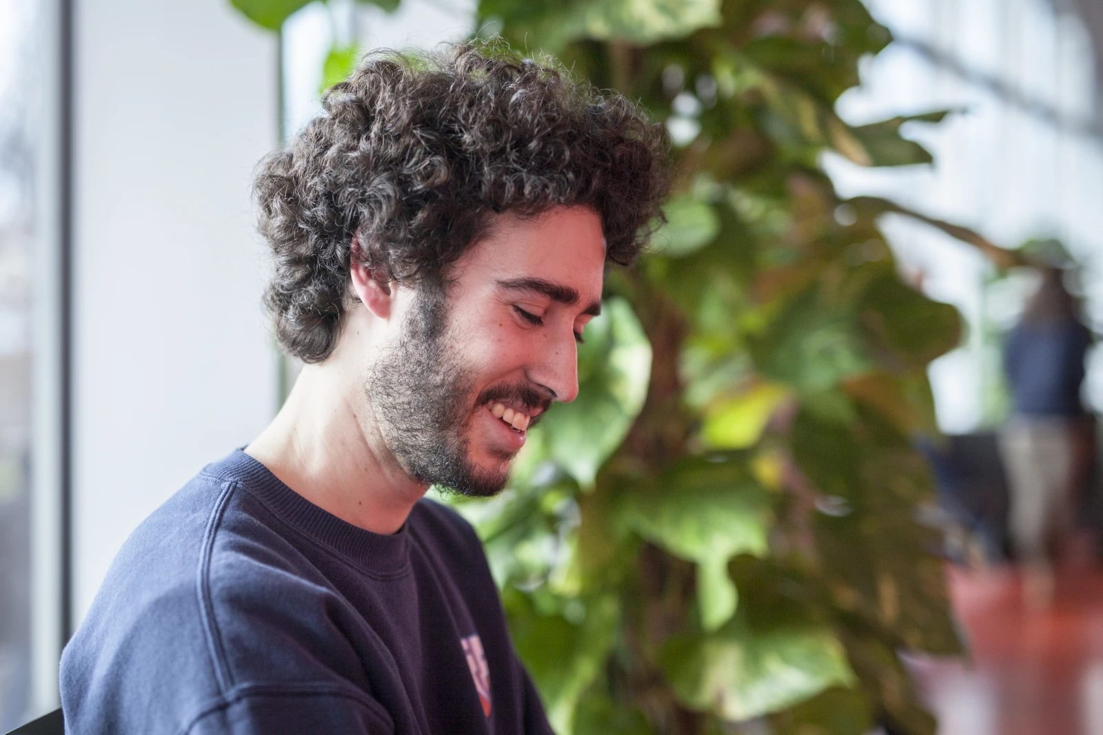 Moi je viens de l’Abitibi. Je suis arrivé à Montréal, ça fait quatre ans, pour étudier en cinéma. Et quand je suis arrivé, je connaissais personne. Un des responsables aux Activités culturelles m’a proposé de filmer leurs shows et de faire les montages en échange d’ateliers. Et à force de filmer les shows, j’ai vraiment commencé à vouloir en faire. Fait que l’année dernière, à la fin de mon bac, j’ai passé des auditions. Aujourd’hui, j’en ai fait six des shows de théâtre, j’ai vraiment eu la piqûre. J’aime me mettre en danger en fait, essayer quelque chose de nouveau tout le temps; t’es pris dans une pièce, mais tu sais pas trop ce qui va se passer, quel rôle tu vas avoir. J’ai fait des pièces où chaque phrase était complétée par quelqu’un d’autre, fait que je pouvais pas pratiquer moi-même seul chez moi, fallait toujours qu’on soit en groupe, qu’on forme une unité. Et d’autres pièces, c’était comme des monologues, tu formes une partie d’un tout. C’est tout le temps des exercices différents, et faut que tu rentres dedans à fond pour que ça marche! Pis j’ai rencontré tellement de monde grâce à ça! Des gens de n’importe quel programme, avec qui je fais d’autres projets plus personnels, en audiovisuel surtout. Je suis représentant des cycles supérieurs de mon association étudiante, pis on veut organiser des projections, et on a réussi à avoir une entente avec les Activités culturelles pour projeter nos films, avoir des rabais, etc. À la maîtrise, c’est parfois dur de rejoindre tout le monde, et c’est ce genre d’évènements qui nous permet de nous rencontrer.