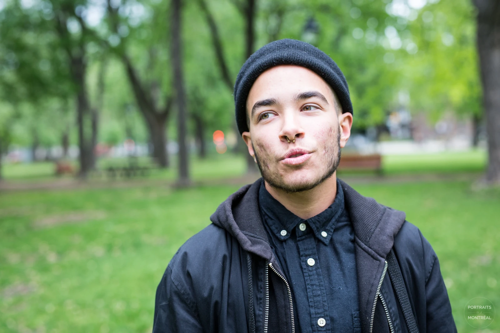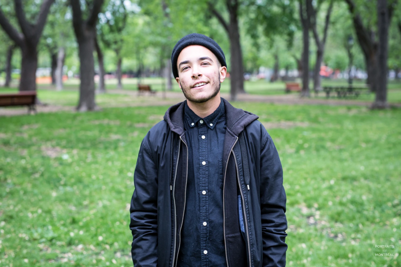 « Pour faire une hormono-thérapie, il faut aller consulter un psychologue pendant plusieurs sessions, se faire évaluer. Ça c’est vraiment con by the way, sérieusement s’il y a une chose plus conne que ça, de se faire dire par une autre personne ce qu’on est ou ce qu’on n’est pas… Il faut que tu correspondes à des critères, ensuite cette personne là te donne une lettre pour dire que tu peux recevoir la testostérone – ou les estrogènes –, puis ensuite tu vas voir un endocrinologue, ou un médecin de famille qui va te référer à un endocrinologue. J’ai commencé en août, j’ai rencontré ma psychologue jusqu’en octobre, et en novembre j’ai commencé à avoir mes injections. Personnellement j’ai jamais aimé les aiguilles ; pour te dire, je tombais sans connaissance quand j’en voyais. Mais je suis passé par dessus cette peur pour pouvoir faire ça. C’était vraiment difficile, la première, je shakais… Mais j’étais heureux, je sautais partout, je courrai dans la rue avec mon ami comme ‘Aaah, la vie est tellement hot !’ Les changements arrivent à partir de trois semaines, mais ils sont vraiment minimes. Et à chaque semaine t’as des changements. Je pense que ma transition se passe relativement bien, pour les changements physiques, et pour les changements psychologiques. Par exemple je n’aimais pas ressentir des sentiments extrêmes, et j’étais une personne qui en ressentait beaucoup. Bizarrement avec les injections de testostérone, ça s’est comme effacé. Et sincèrement, d’être moins touché par les blessures que les gens essaient de t’infliger, c’est vraiment nécessaire dans une transition. Et je pense que ça c’est le plus grand changement psychologique que ça m’a fait : je suis devenu un peu plus dur. Le gouvernement provincial requiert une stérilisation pour changer son marqueur de genre sur son certificat de naissance. Demander ça à des gens c’est vraiment difficile. Moi personnellement je prends juste des hormones, parce que pour moi, la patience dans une transition c’est vraiment important. Chaque jour je me pose des questions sur ma transition, je me remet en question, parce que c’est quelque chose qui reste à vie. Je pense que je suis rendu au point où je m’accepte vraiment pour qui je suis. Je pense que je vais faire une chirurgie de mastectomie, une ‘reconstruction de poitrine masculine’ – c’est un terme assez weird. Ça prend autour de six mois pour se faire accepter, mais je ne suis pas pressé, on a toute notre vie pour faire une transition. »