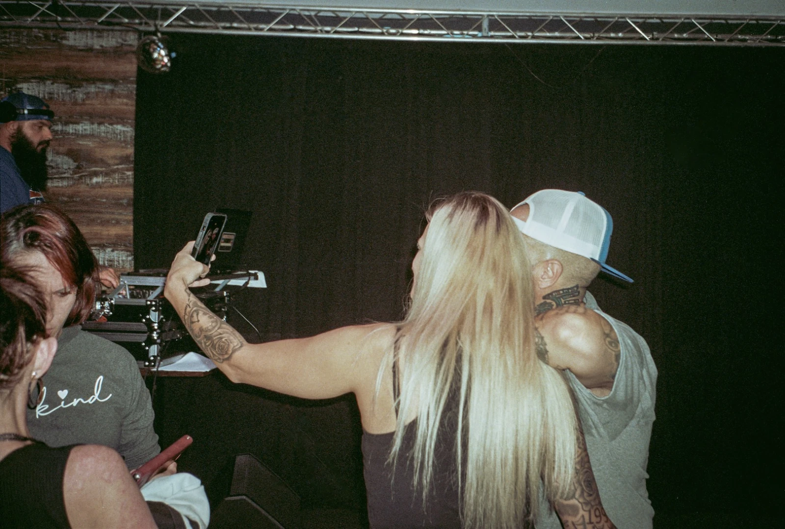 Les morceaux défilent. Le crowd danse, vape, filme et boit à même le pichet de Smirnoff ICE, les cordes de string sorties. Entre les tracks, le public demande ses titres favoris. Le plancher se couvre rapidement de bière et de cigarettes déchirées. Tout le monde connaît chaque refrain. Les chaises tombent. Des couples s’enlacent dans l’étreinte des slows. Deux jeunes filles pleurent en chantant Si tu meurs.