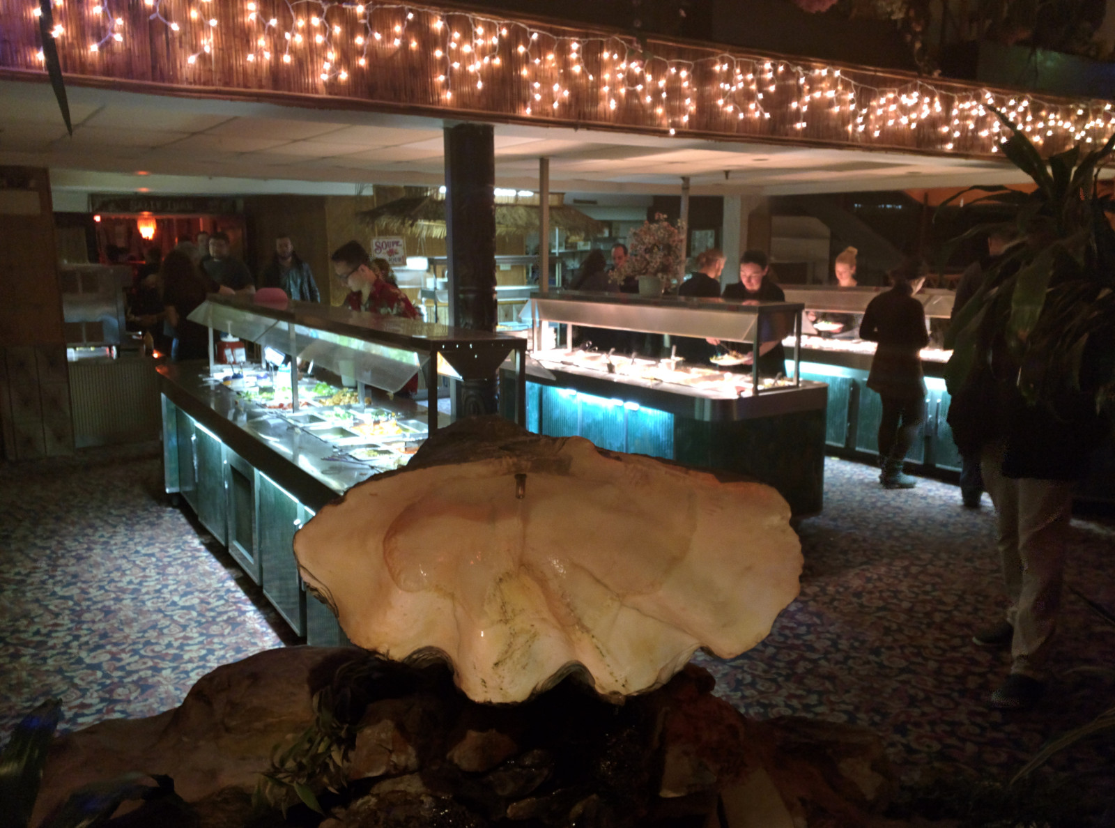 Dès l’arrivée, le ton est donné: on est accueillis dans la verrière au ciel bleu peinturé par le gigantesque dragon qui surplombe le lagon où vit une colonie de tortues accompagnée de faux poissons koï en bois. Les luminaires de la salle du buffet sont dépareillés mais atteignent tous le coeur de cible: ici, l’Est de Montréal devient carrément l’Orient. Un Orient dont la définition géographique est somme toute plutôt vague: les icônes polynésiens côtoient le papier de Chine et les caractères vaguement japonais.