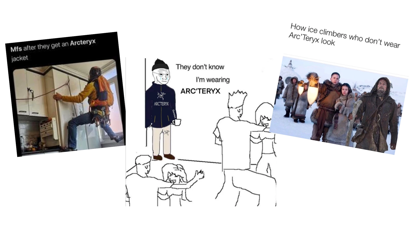 Au Québec, dans la communauté de plein air, j’ai l’impression que porter du Arc’teryx est devenu l’ultime symbole du « cool kid ». La preuve : le fameux logo Arc’teryx est devenu la cible d’innombrables memes, attribuant à ceux qui le porte un genre de « God complex » du type « Je me sens supérieur aux clients de cette microbrasserie parce que je porte une shell en Gore-Tex à 700 $ ».
