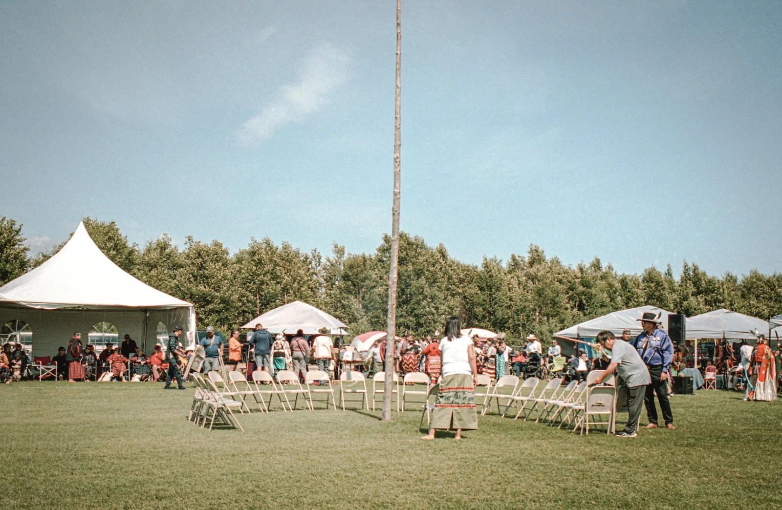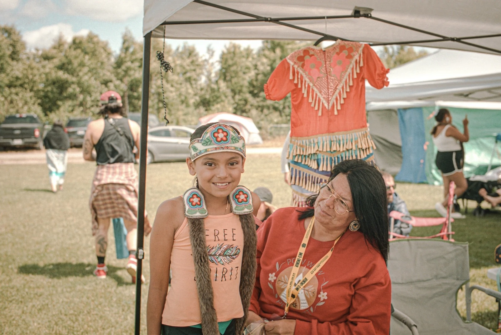 Un chapiteau offre de l’ombre aux aînées coiffées du célèbre bonnet montagnais, le « sheshipatuan-akunishkeun ». Si les anciens sont toujours traités avec considération, le thème annuel du pow-wow est centré sur la relève, mettant de l’avant la participation des nombreux jeunes présents.