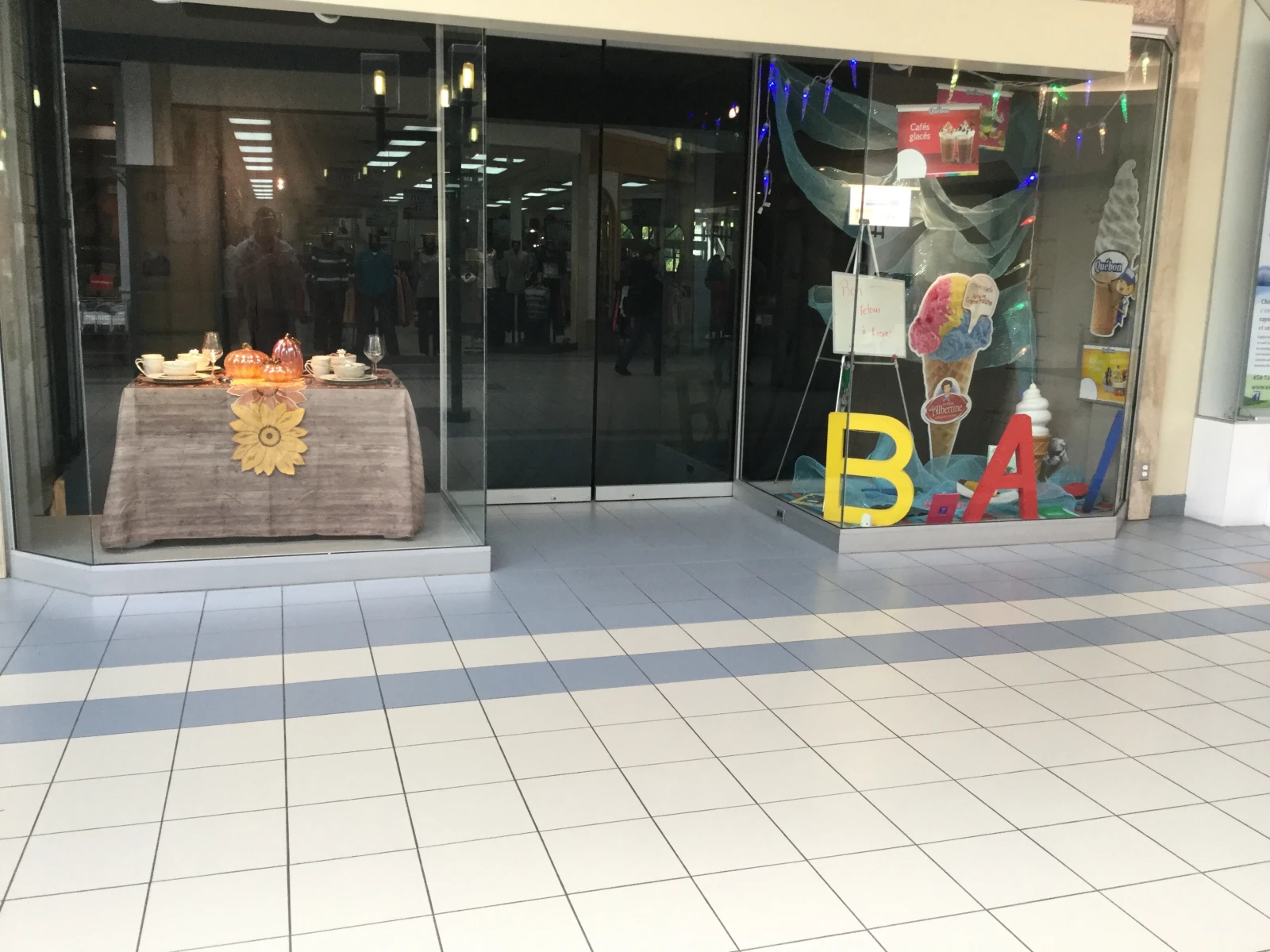 En se promenant allègrement dans le corridor, on est subjugué par la beauté de l’endroit. Ce qui frappe le plus, c’est la façon dont on a si habilement détourné les vitrines des magasins vacants.