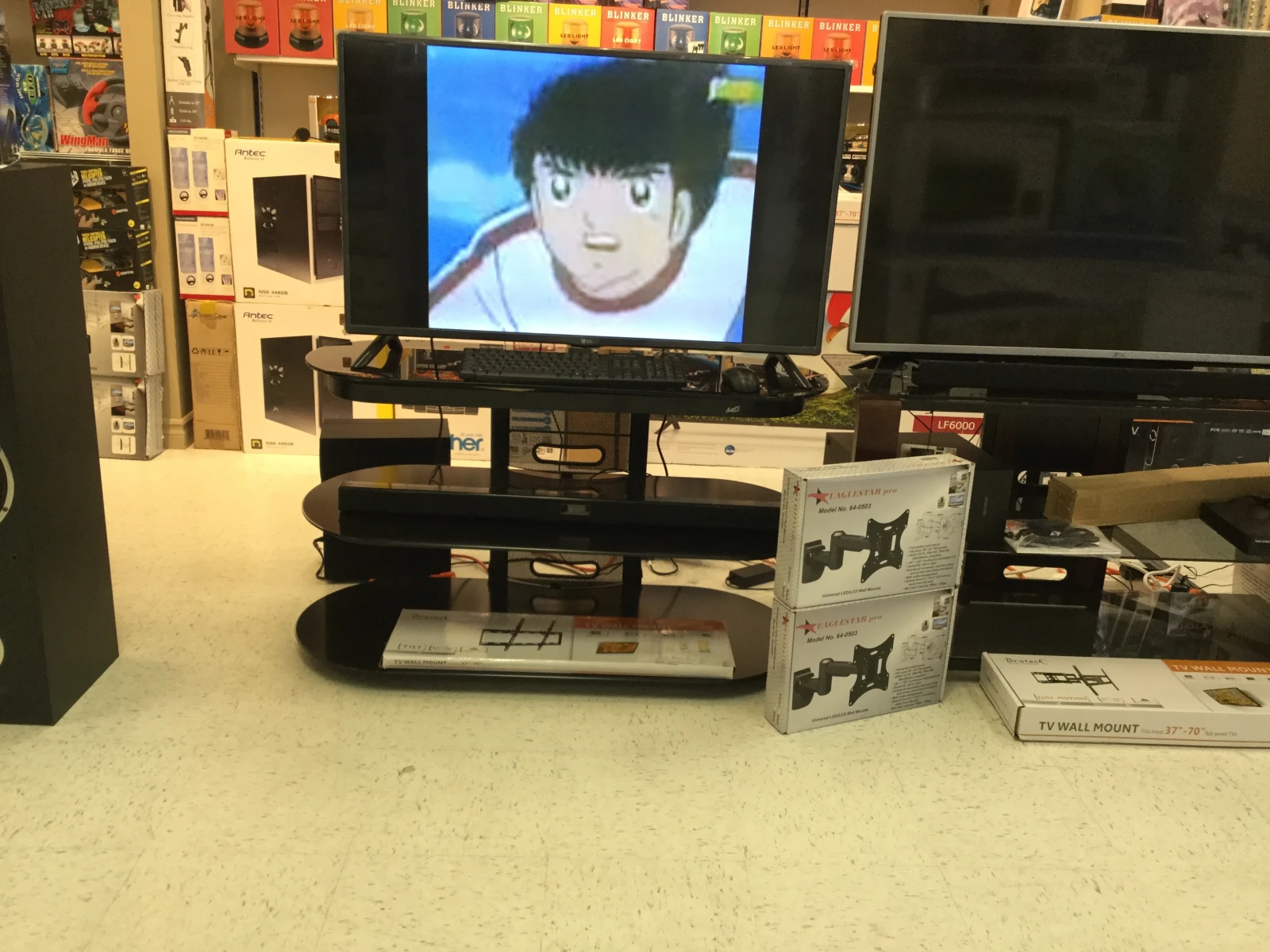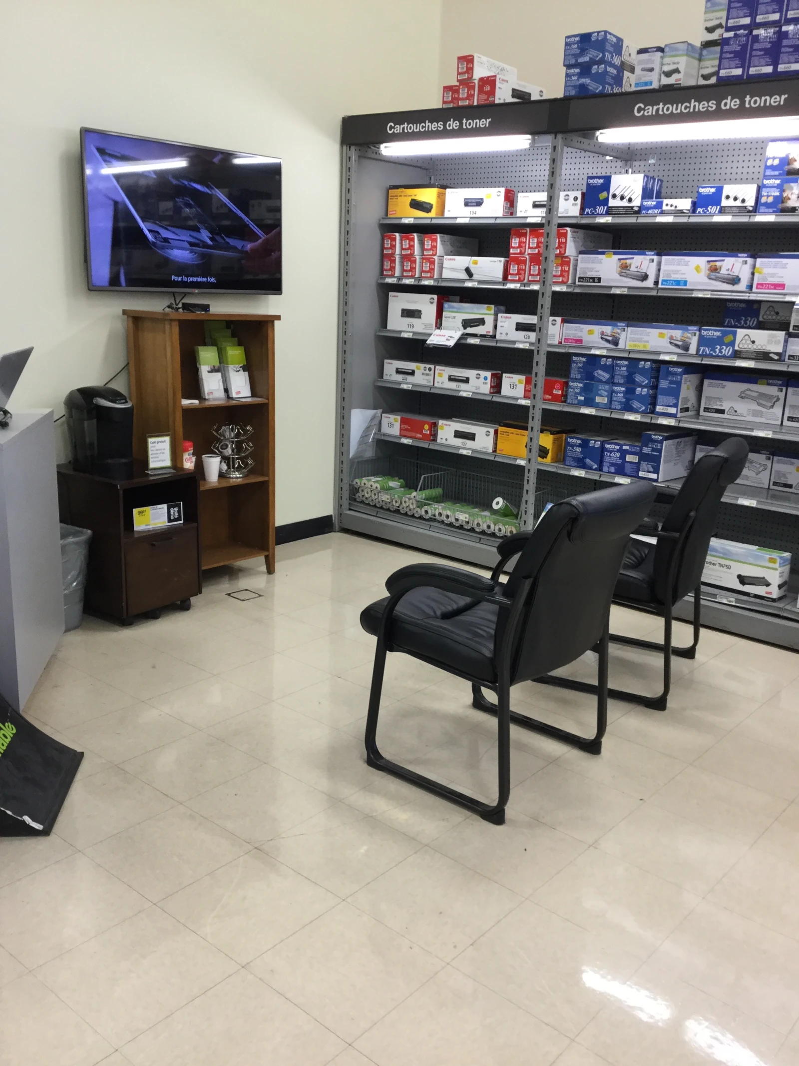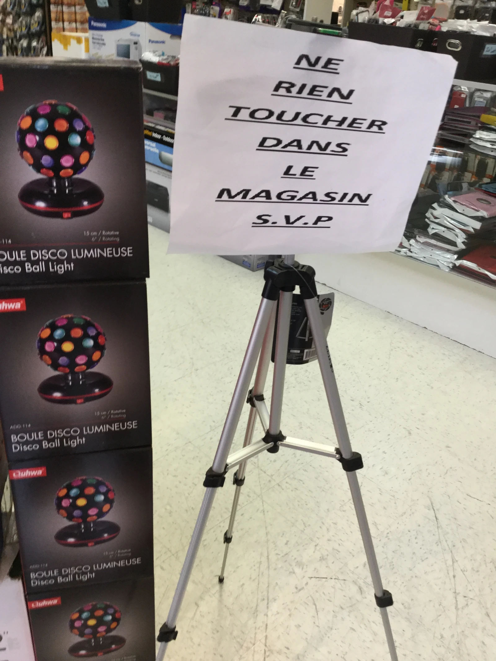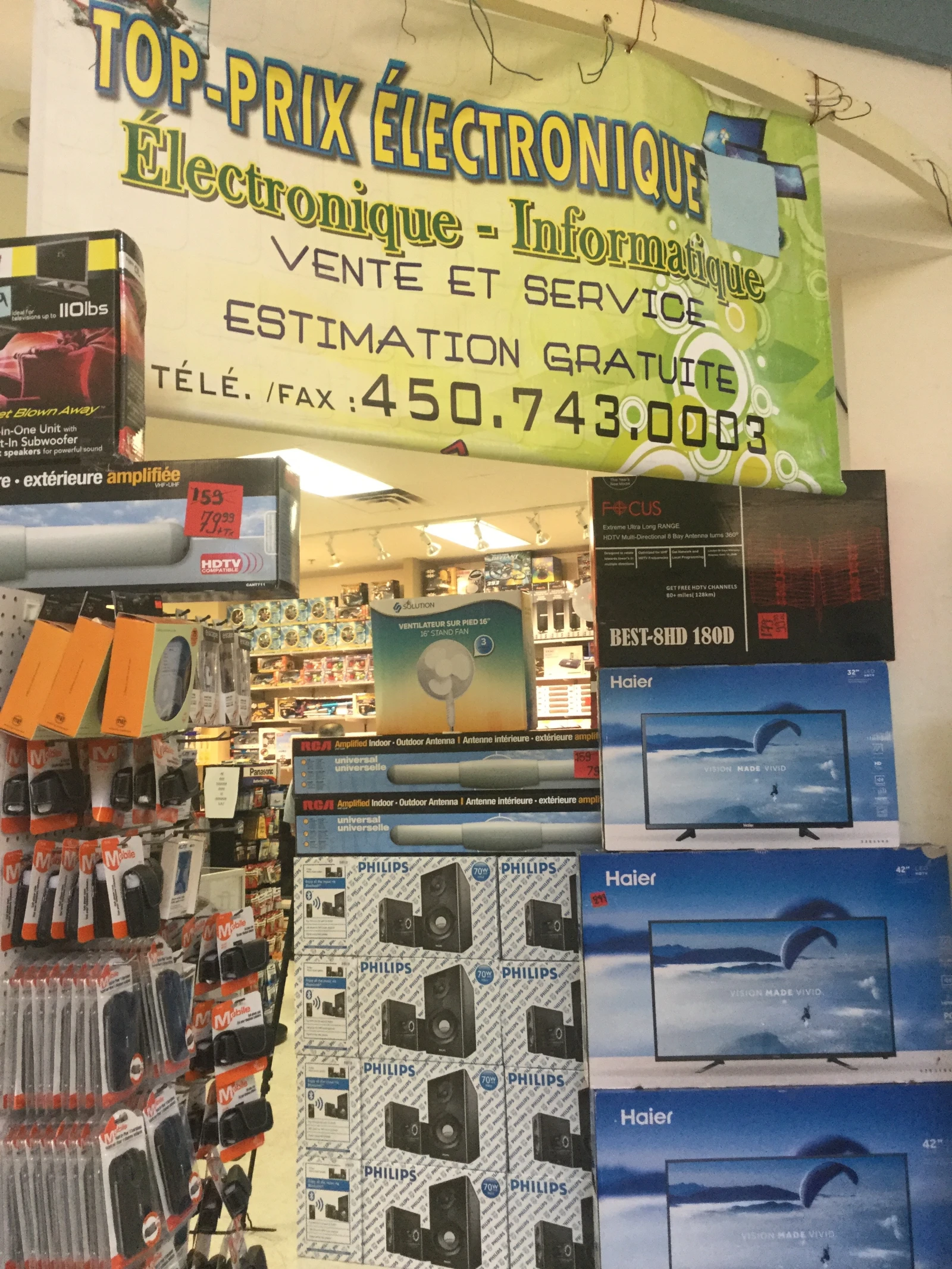 Toujours rassurant d’entrer dans un magasin d’électronique qui juge encore pertinent de mettre son numéro de télécopieur sur son enseigne principale.