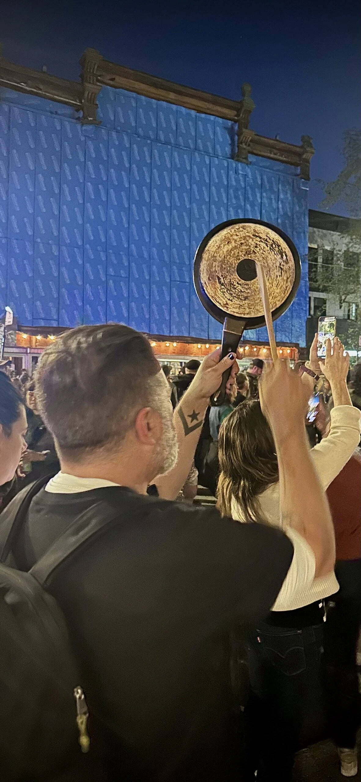 En réponse, plus de 700 personnes se sont donné rendez-vous quatre jours plus tard devant le cabaret, pour émettre du bruit par tout appareil sonore à portée de main – casserole, vuvuzela, poêle, trompette, violon, saxophone, klaxon de vélo, maracas et percussions synchronisées, gracieuseté du groupe Terrato.