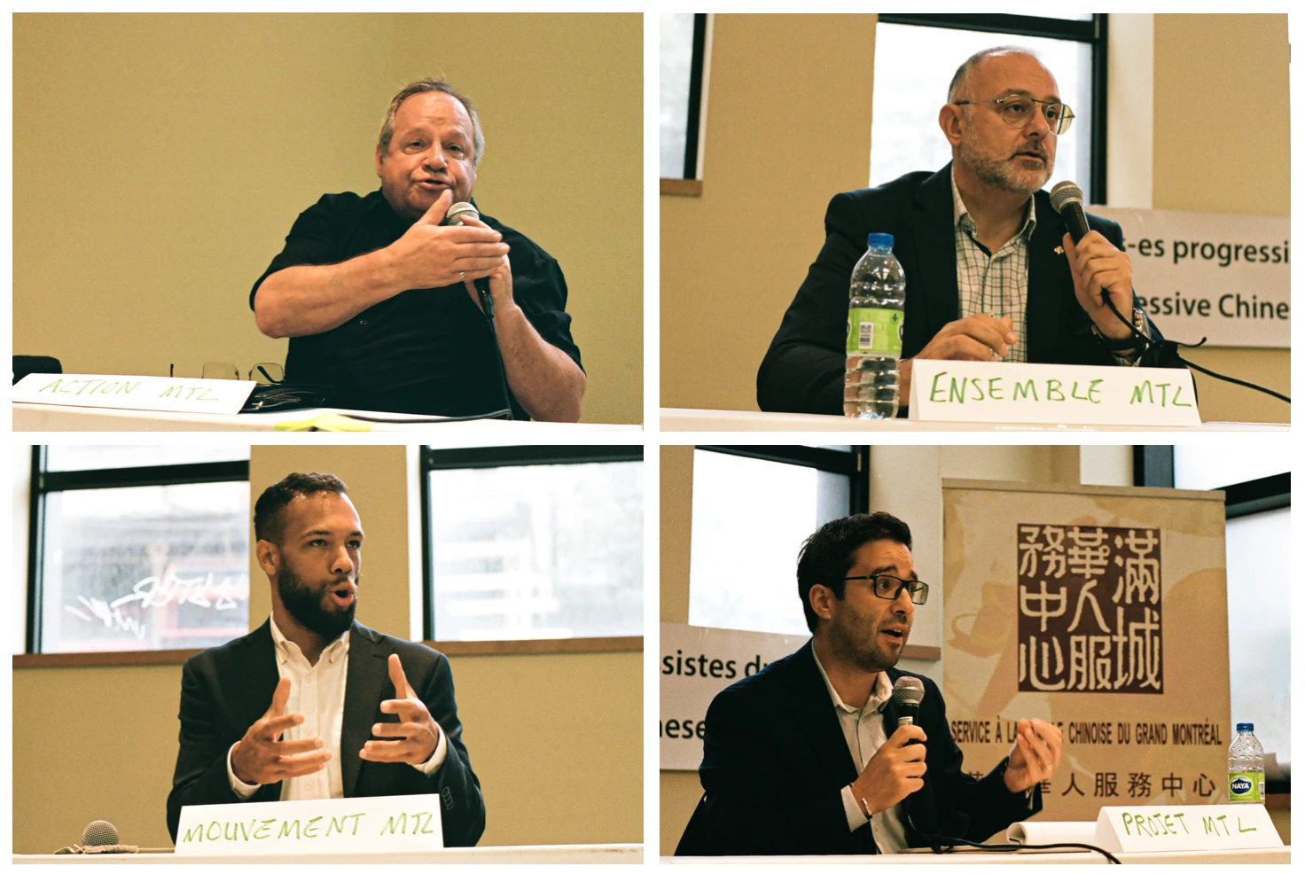 Juste en face, un petit local occupé par le Service à la famille chinoise du Grand Montréal accueille un débat citoyen organisé dans le cadre de la campagne électorale municipale. La table rassemble Robert Sévigny d’Action Montréal, Aref Salem d’Ensemble Montréal, le chef de Mouvement Montréal Balarama Holness et Robert Beaudry, conseiller de Projet Montréal en quête d’un second mandat dans l’arrondissement.