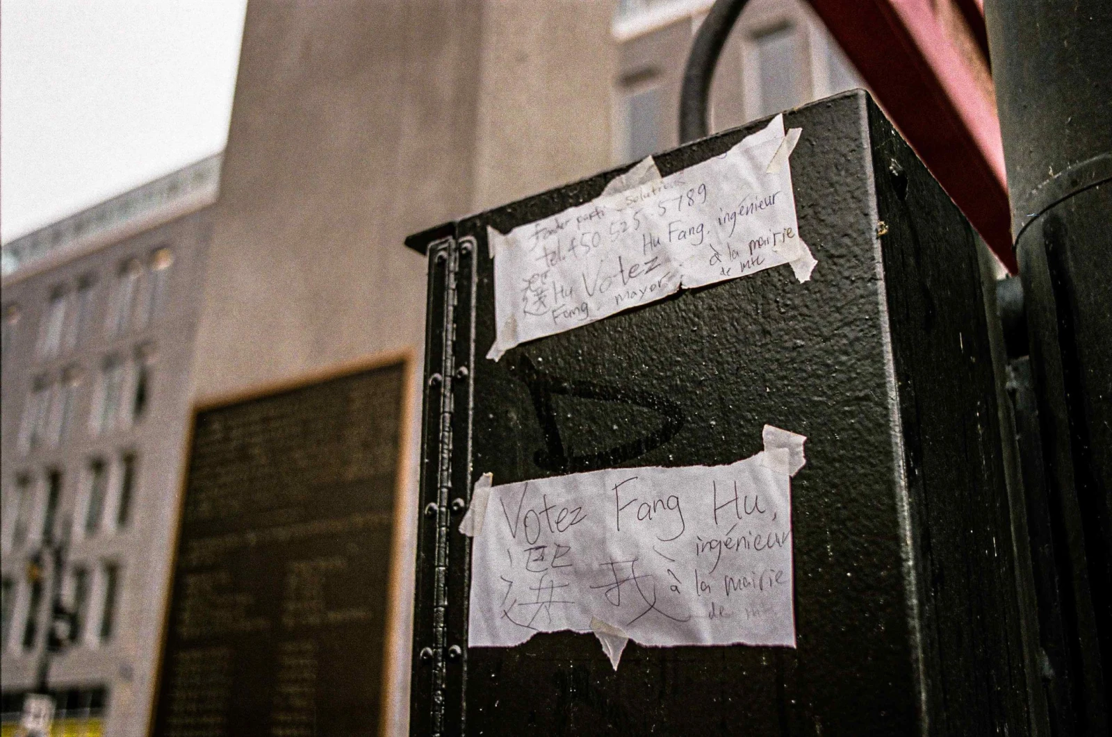 Place Sun-Yat-Sen, au cœur du Chinatown de Montréal. Robert Beaudry, conseiller de Saint-Jacques dans Ville-Marie, défile son iPad sous un ciel menaçant. Balarama Holness, candidat à la mairie, courtise la caméra de CBC News. Entre les deux politiciens, trois vétérans du coin bavardent, chariots d’épicerie au repos. Tout près, un homme murmurant à lui-même s’affaire à vider le contenu d’une poubelle. Il quitte la scène bredouille sur un vélo d’enfant alors que derrière, le SPVM enquête dans un logement où une femme s’est fait poignarder dans la nuit.