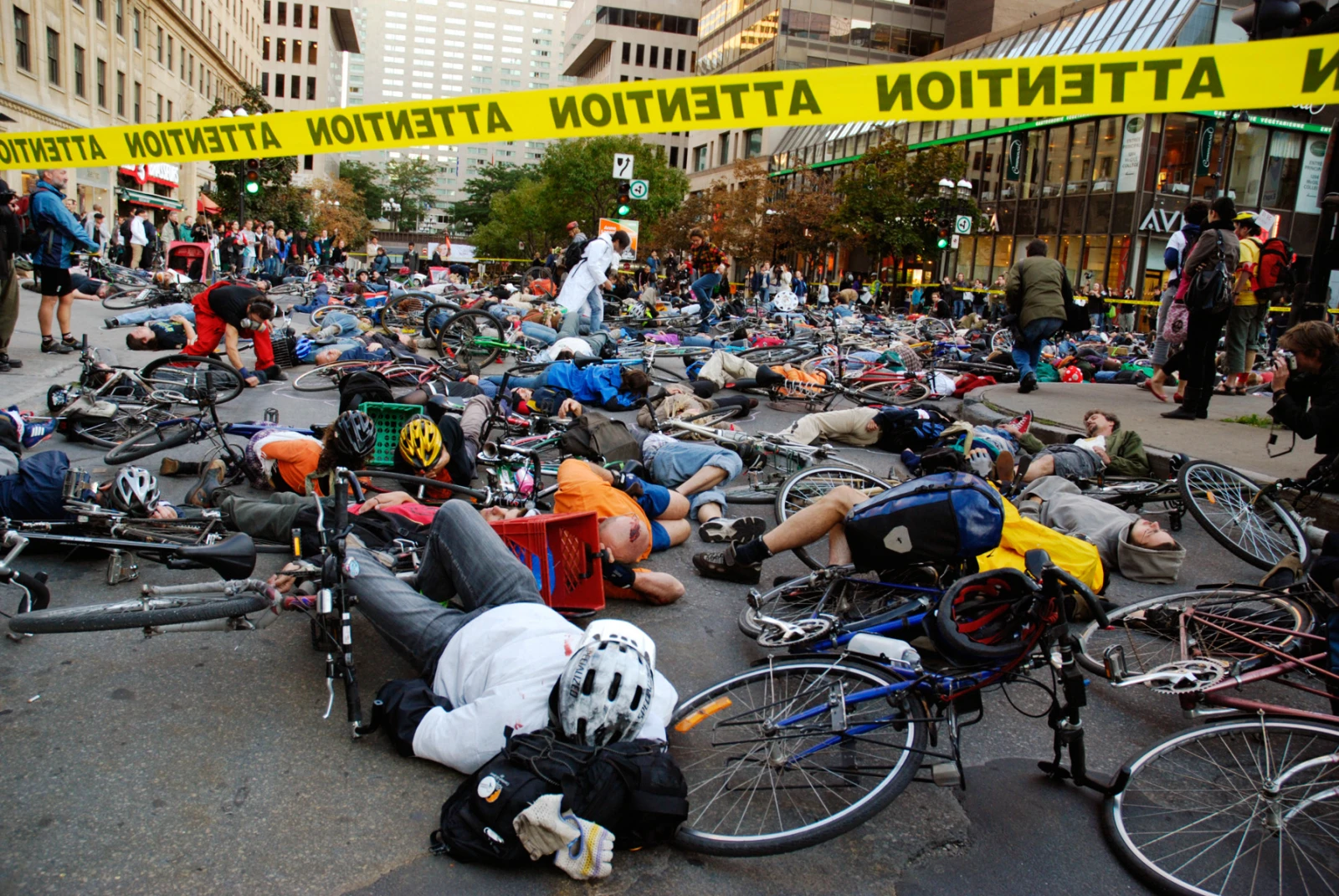 J’aurais encore mille choses à dire sur le sujet, mais un blogue de 50 feuillets finit par perdre de son intérêt, alors je vous laisserai simplement réfléchir par vous-mêmes à cette question en vous proposant les quelques articles qui ont nourri ma propre pensée. D’un côté, on trouvait dans les quotidiens de ces jours-ci des papiers sur le mécontentement des consommateurs en raison des prix de l’essence et des prédictions plus ou moins encourageantes concernant l’avenir de la voiture. De l’autre, on pouvait lire les lettres ouvertes de plusieurs cyclistes, ici et ici, et des articles concernant l’impunité des automobilistes responsables des accidents de la route impliquant des cyclistes. Intéressant, n’est-ce pas, que les citoyens conscientisés qui essaient de faire leur part pour leur environnement et pour leur propre santé en enfourchant leur bicyclette meurent au bout de leur sang et de leurs convictions, parce que des automobilistes étourdis n’ont pas pris la peine de regarder attentivement avant d’ouvrir leur portière ? L’image parle d’elle-même.
