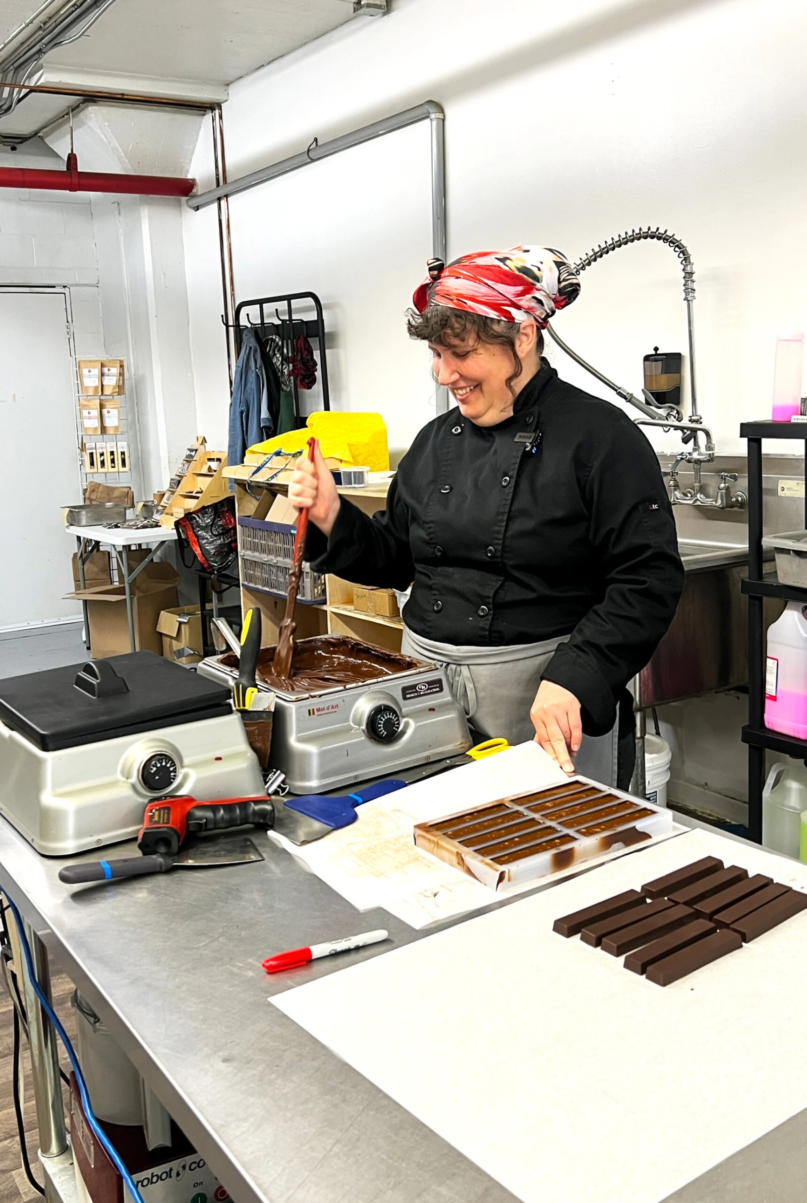 On est dans l’un des locaux aux airs industriels de l’immeuble du 2177 rue Masson, proche de l’avenue des Érables. Marianne s’y est installée le 1er novembre dernier pour partir sa propre business : MIHKU Chocolats et gourmandises. Mais ce n’est pas sa première fois.