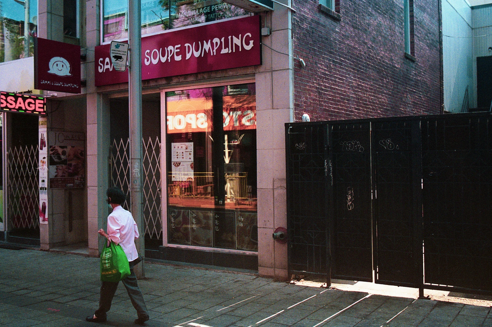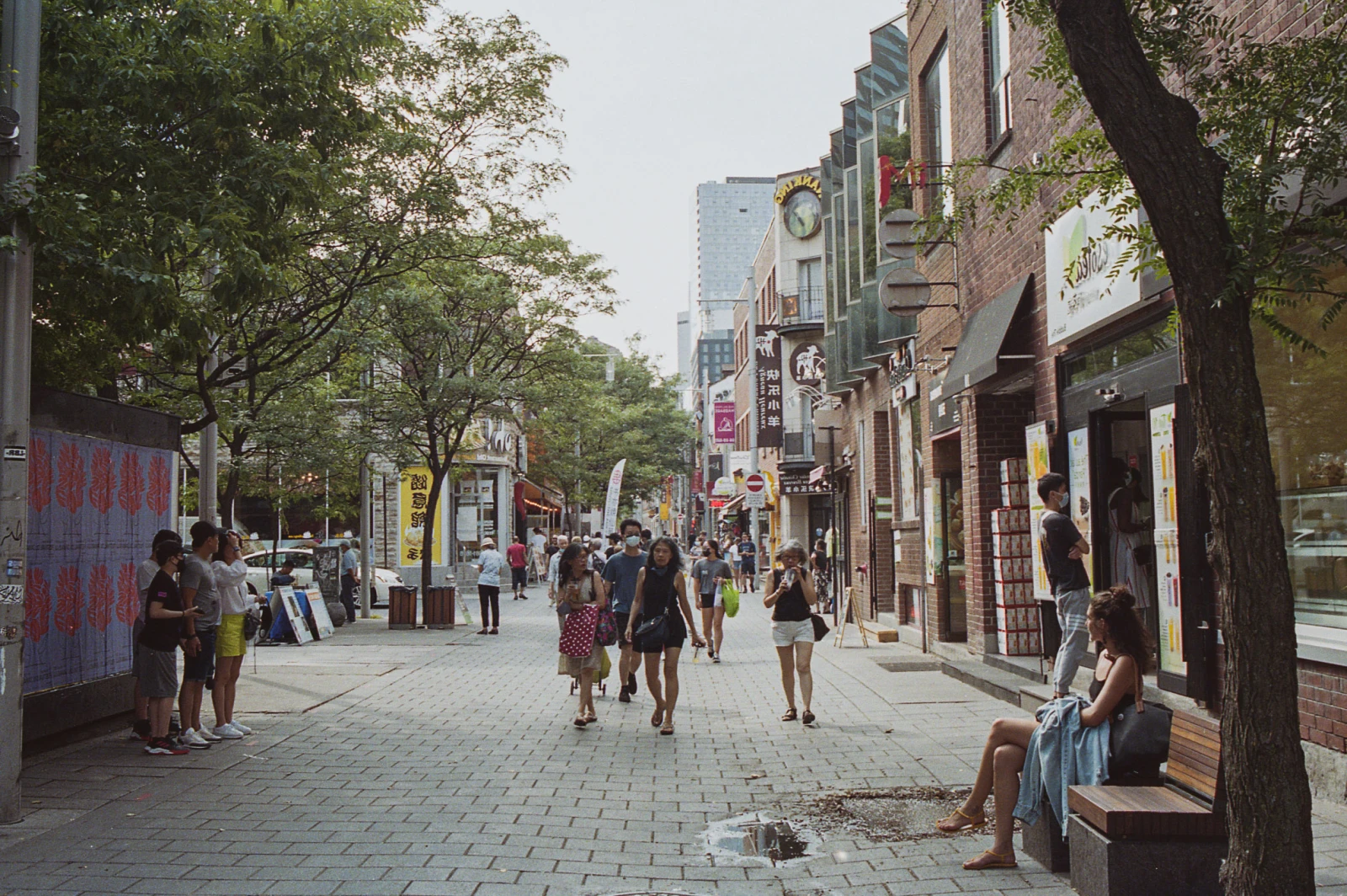 Des adeptes du Falun Gong pratiquent leurs exercices sur la place Sun-Yat-Sen. Derrière, un homme torse nu pivote sur son BMX. Des adolescentes dégustent des kogos coréens. Les livreurs Fantuan zigzaguent entre les nombreux touristes qui magasinent des souvenirs en soie et des décorations de bambou. Des old timers fument leur éternelle cigarette en feuilletant les journaux. Un caniche salive devant les canards de Pékin. Un itinérant roupille à l’ombre.