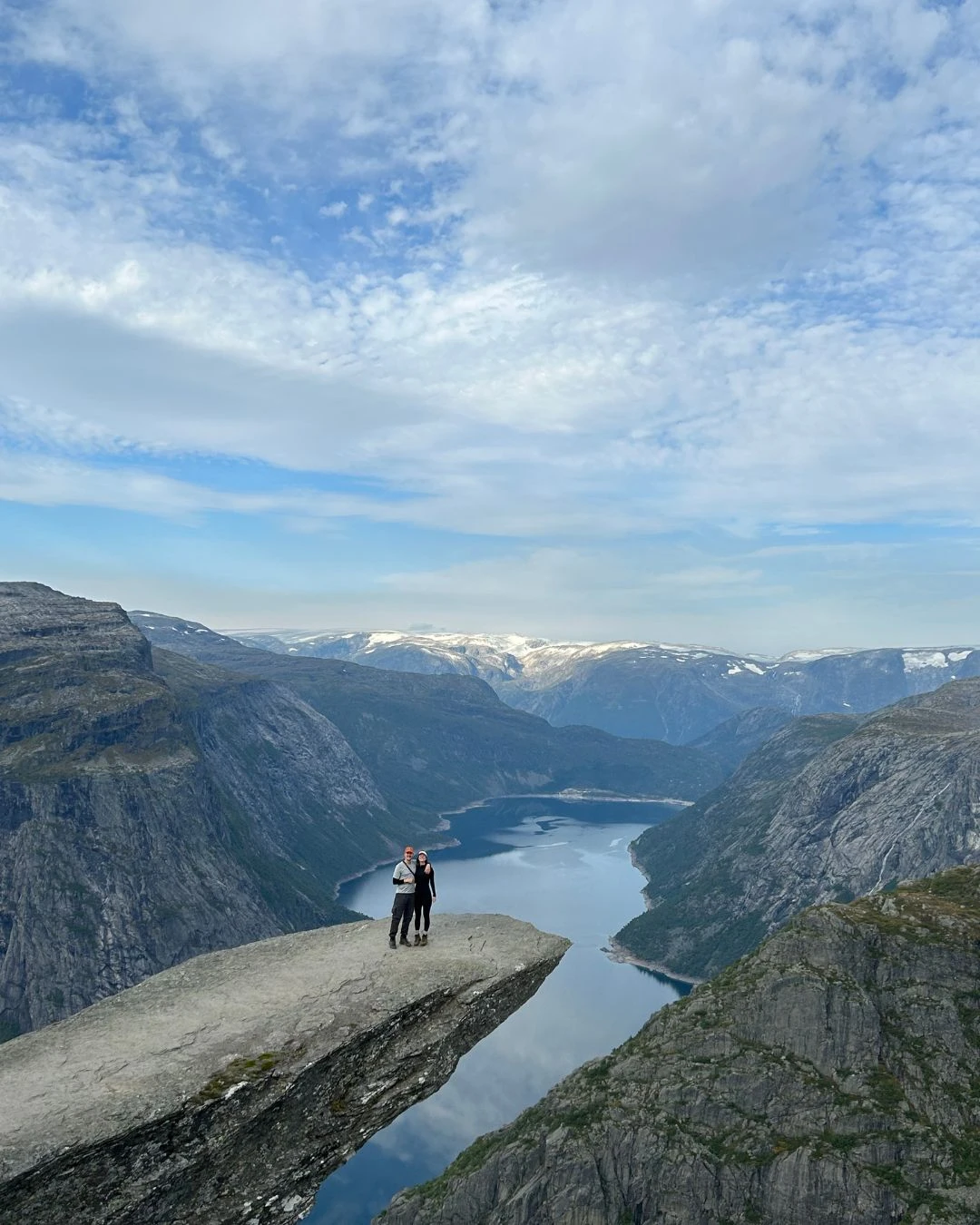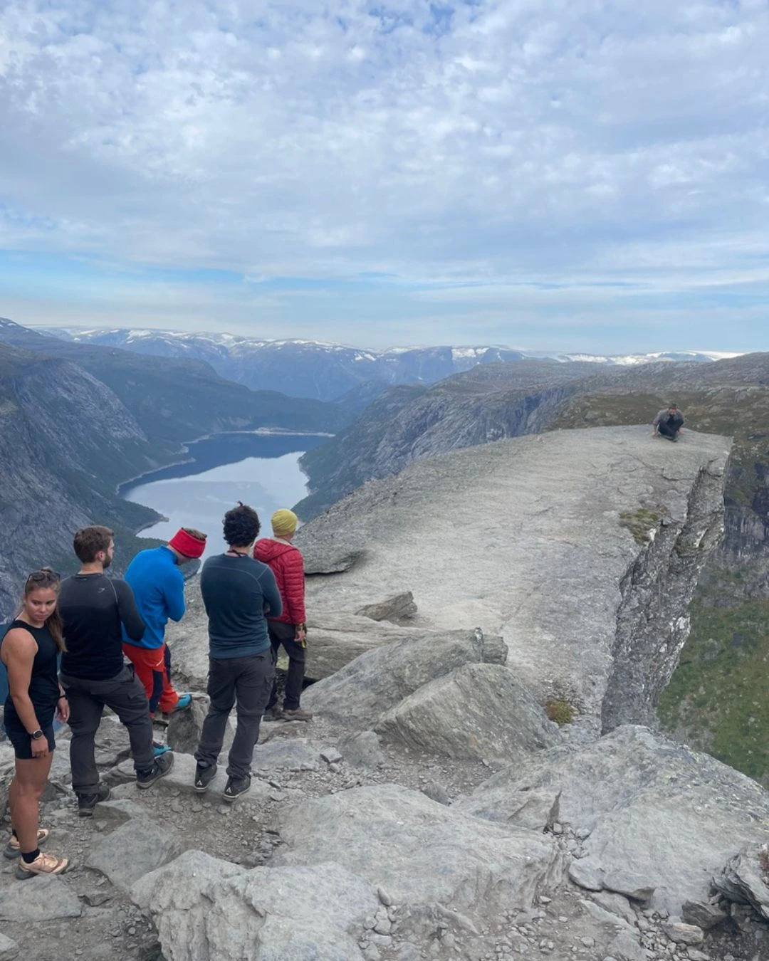 Après quelques kilomètres apparaît en contrebas le lac Ringedalsvatnet, qu’il faut contourner pour se rendre jusqu’à la fameuse « langue ». Même si on sait qu’elle approche, ce n’est qu’une fois à une centaine de mètres qu’on l’aperçoit enfin. Maintenant, c’est le temps de faire la file pour prendre LA photo.