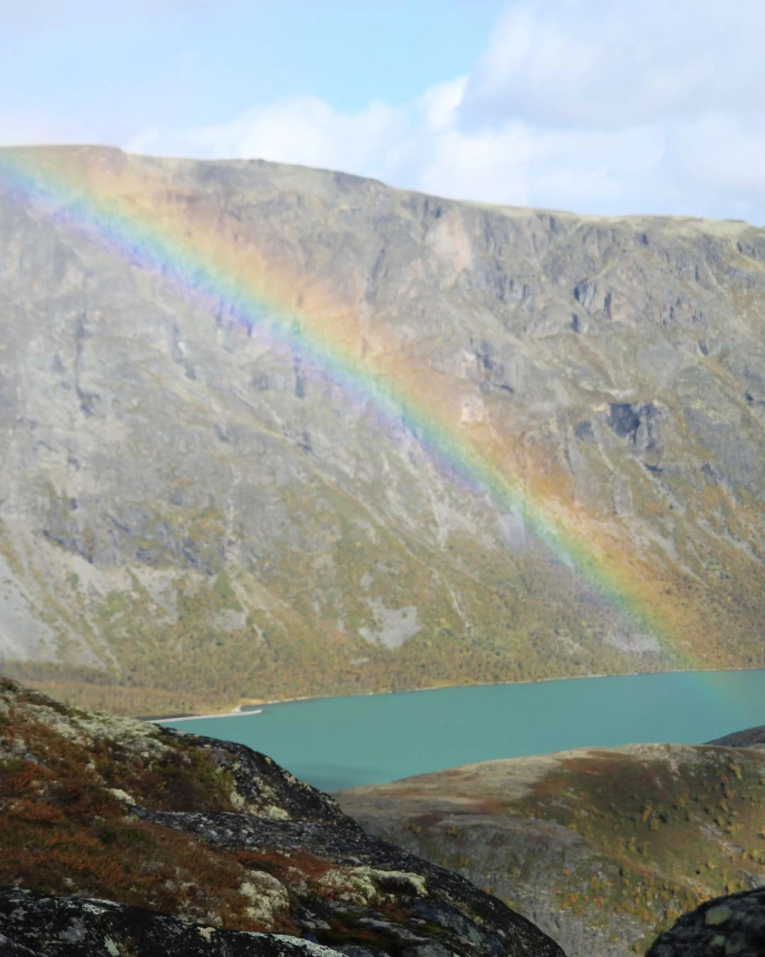 Rapidement, on se retrouve sur le sommet de la crête. D’un côté, l’eau spectaculairement turquoise du lac Gjende, de l’autre, les premiers sommets de Jotunheimen. On se sent petit, dans la terre des géants. En plus, ce sentier est moins fréquenté, et vous aurez beaucoup de moments avec vous-mêmes.
