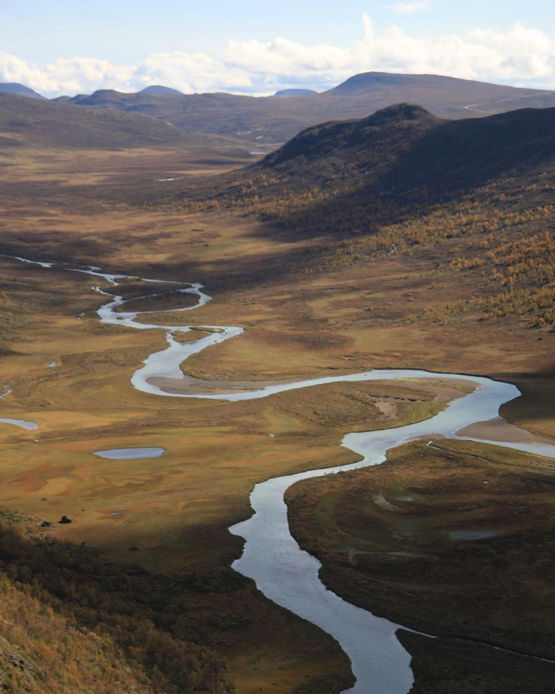 Une fois au sommet, deux options s’offrent à vous pour le retour : revenir en arrière ou continuer pour faire une boucle. La deuxième option, en plus d’offrir de nouveaux paysages, permet de ne pas redescendre les deux sections d’escalade. C’est ce que nous avons choisi. Le retour se fait dans le fond de la vallée, avec le Knutshøe à sa gauche. Au loin, on peut facilement apercevoir des rennes et d’autres animaux.