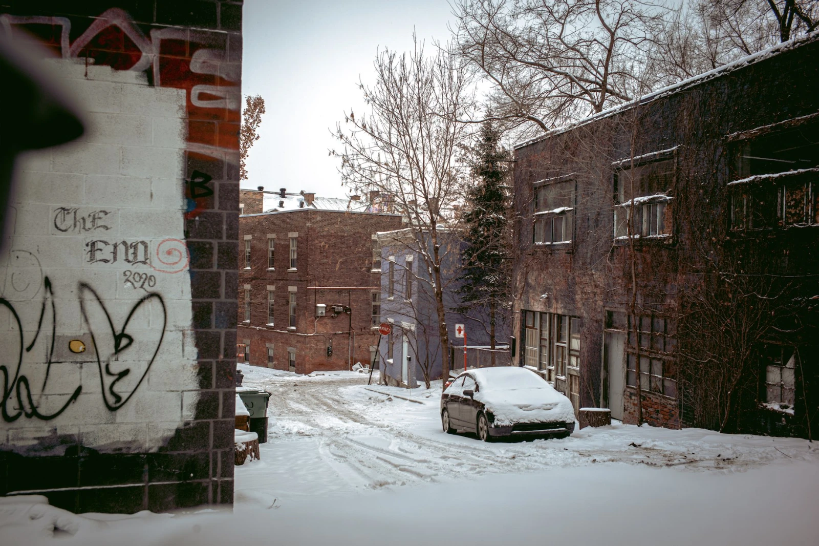 Marcher sur ses trottoirs, c’est aussi croiser des ombres traînant péniblement leurs bâches déchirées sous la tempête, à la recherche d’un refuge dans le métro. Les carcasses de vélos, les panneaux en plywood et l’abondance de graffitis donnent à certains recoins une atmosphère de désolation amplifiée par les déchets qui s’envolent au gré du vent. Une femme, le visage marqué d’un œil au beurre noir, frappe désespérément contre une vitre arborant une affiche « À louer », hurlant contre la neige qui tombe.