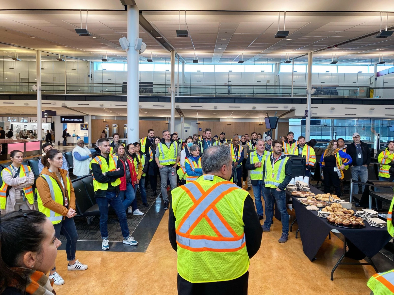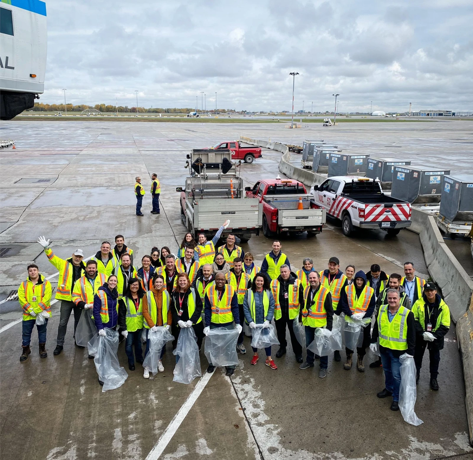 Mais bon, sauver la planète au lieu de la parcourir demeure une noble tâche. Je m’accroche à cette idée en débarquant au lieu de rendez-vous, où se trouvent une centaine d’employé.e.s de l’aéroport vêtu.e.s de dossards jaunes. « L’activité s’adresse à tous les départements et les participants s’inscrivent sur une base volontaire », résume Luc Nadon, le directeur adjoint, conformité et SGS (système de gestion de la sécurité) chez Aéroports de Montréal.