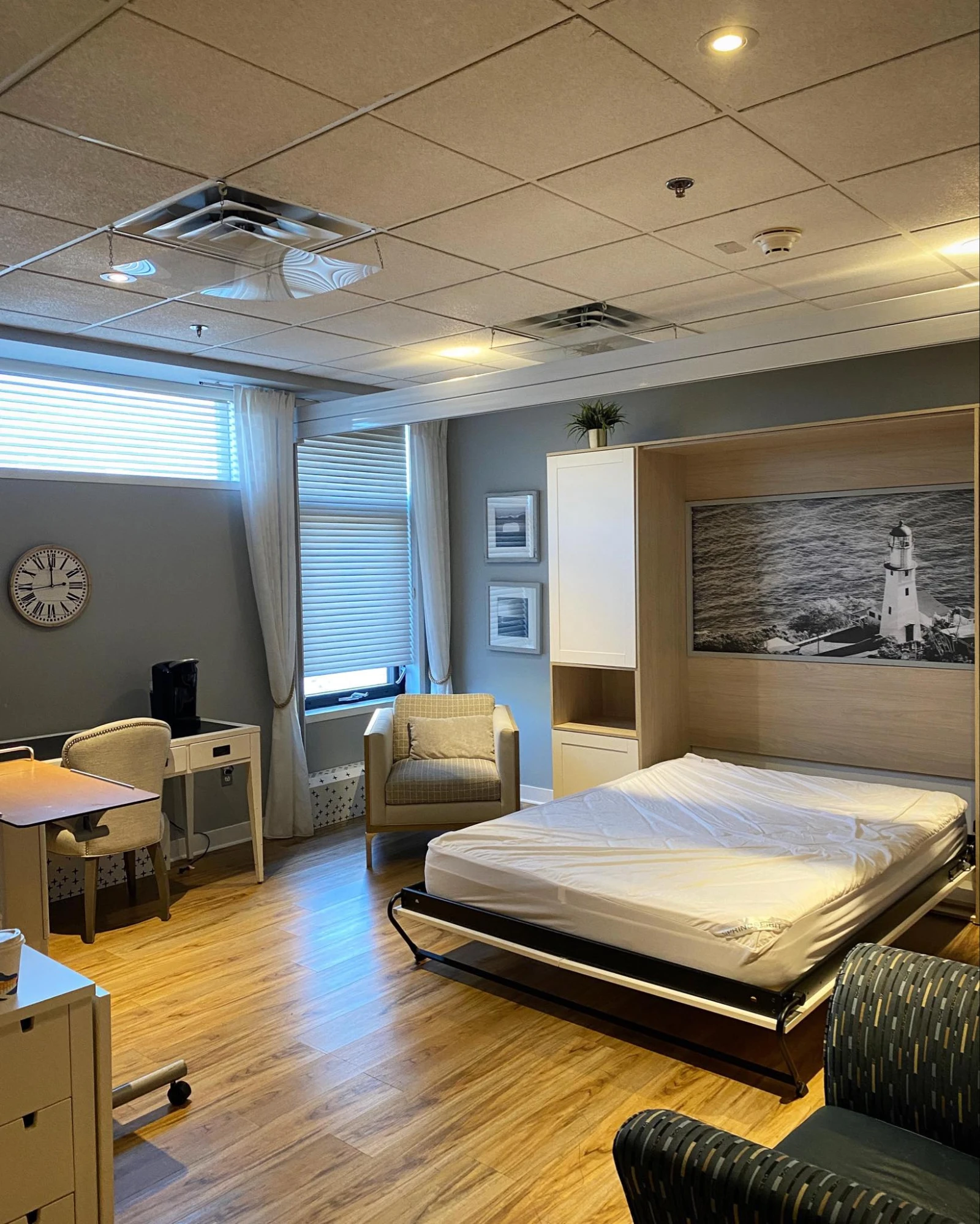 Construit en 2007, le Phare compte une douzaine de chambres, dont deux suites familiales pour les patients en fin de vie. Ces suites ressemblent à des chambres d’hôtel spacieuses. « Ça permet aux parents de passer leurs derniers moments avec leurs enfants sans devoir penser à rien d’autre », souligne Gabrielle.