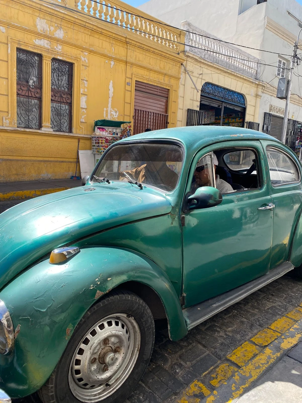 On a exploré la ville, marché jusqu’à un mirador, compté les vieilles Coccinelles (les voitures) qui sont légion ici. J’ai demandé pourquoi à un monsieur qui m’a expliqué qu’elles étaient peu dispendieuses et efficaces pour une conduite en pente dans les rues étroites de la vieille ville.