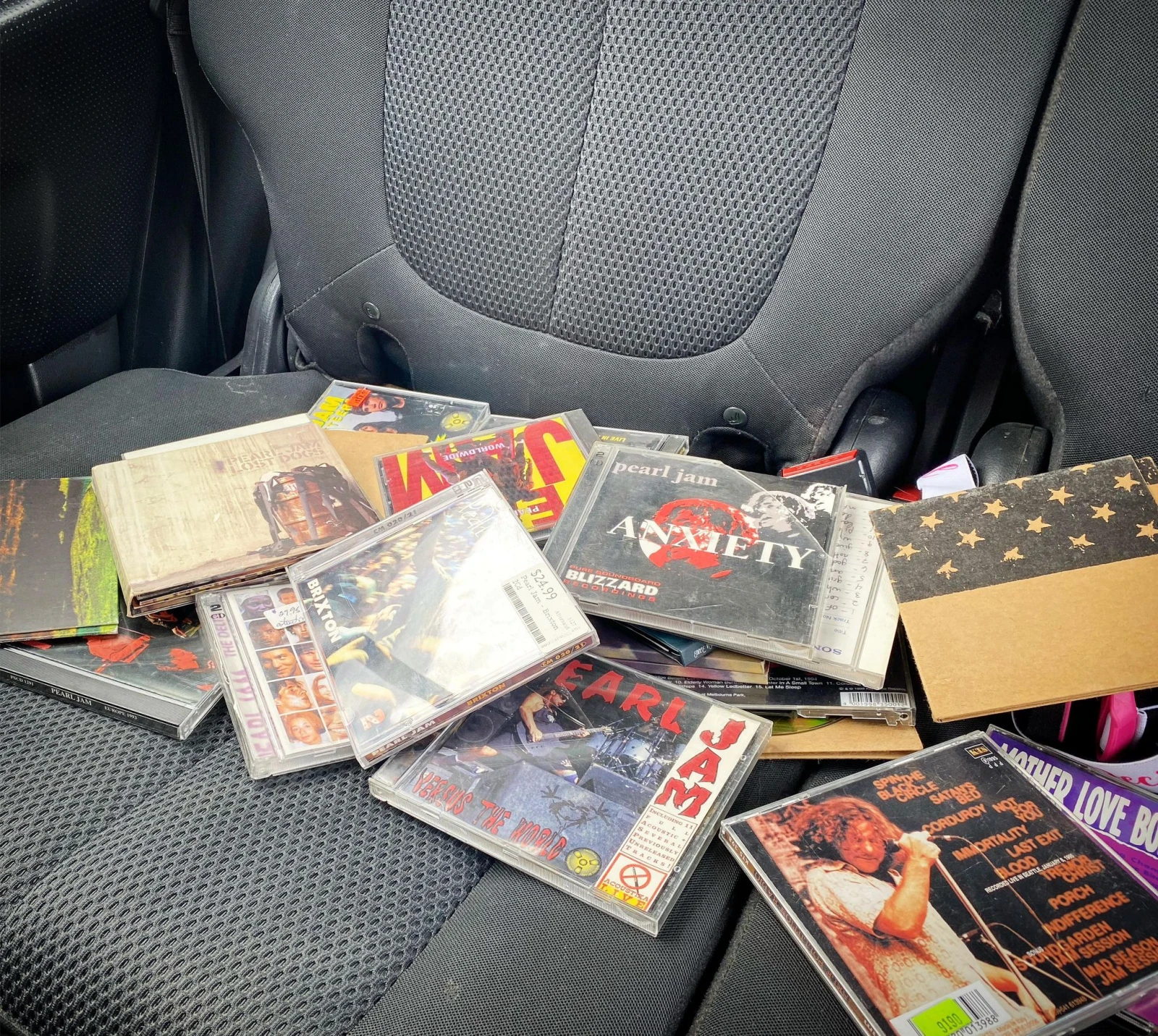 Gabrielle est soulagée aussi. Comme toute fan finie qui se respecte, elle a apporté des bons vieux CD pour rythmer les 597 kilomètres nous séparant de la Grosse Pomme. J’ai fait la même chose, puisant dans mes archives de CD de concerts live qui m’ont coûté la peau des fesses.