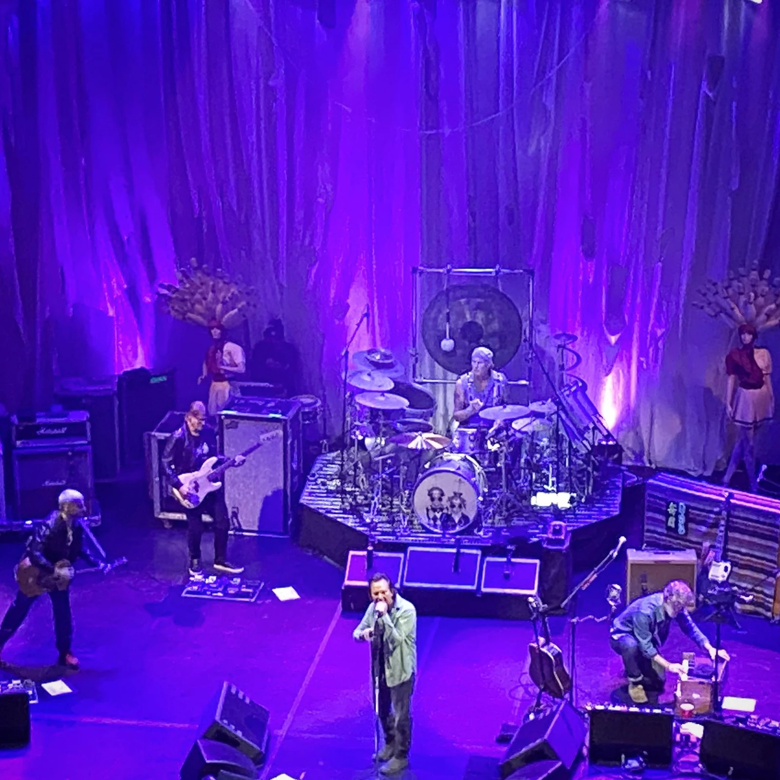 Inutile de vous emmerder avec une critique en bonne et due forme du concert (il en existe déjà quelques bonnes, sinon). Mais disons que les fans en ont eu pour leur argent, avec une enfilade de hits de Pearl Jam (Porch, Dirty Frank (?!?), Not for You), d’Eddie solo (quelques pistes du prochain album attendu en février, dont Brother the Cloud en hommage à Chris Cornell), un bon vieux solo de drum et d’immenses covers (I’m One “The Who”, Isn’t It a Pity “George Harrison”, etc.).