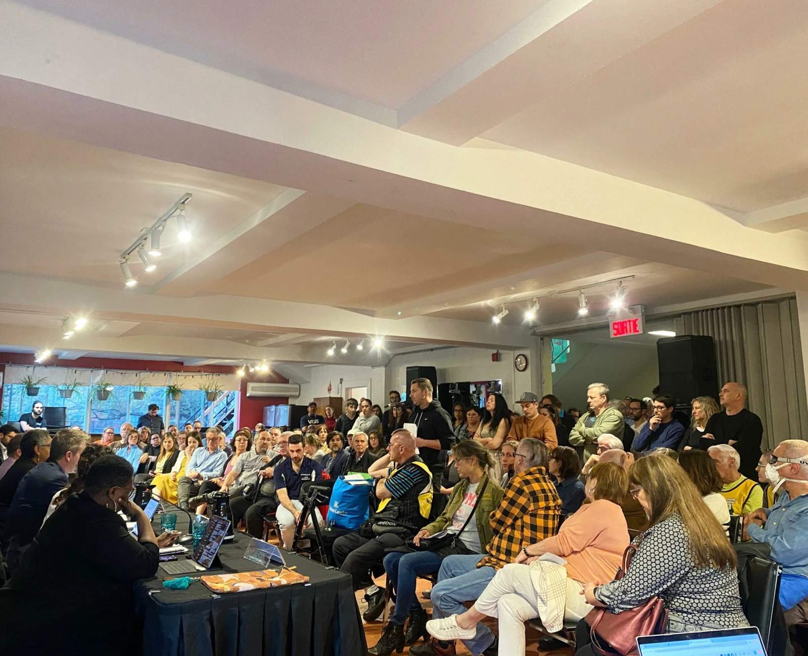S’y entassaient des citoyens de tous les âges, plusieurs familles aussi, forçant quelques membres du comité exécutif à tirer leurs tables pour permettre à tout le monde de se frayer un chemin dans la salle.