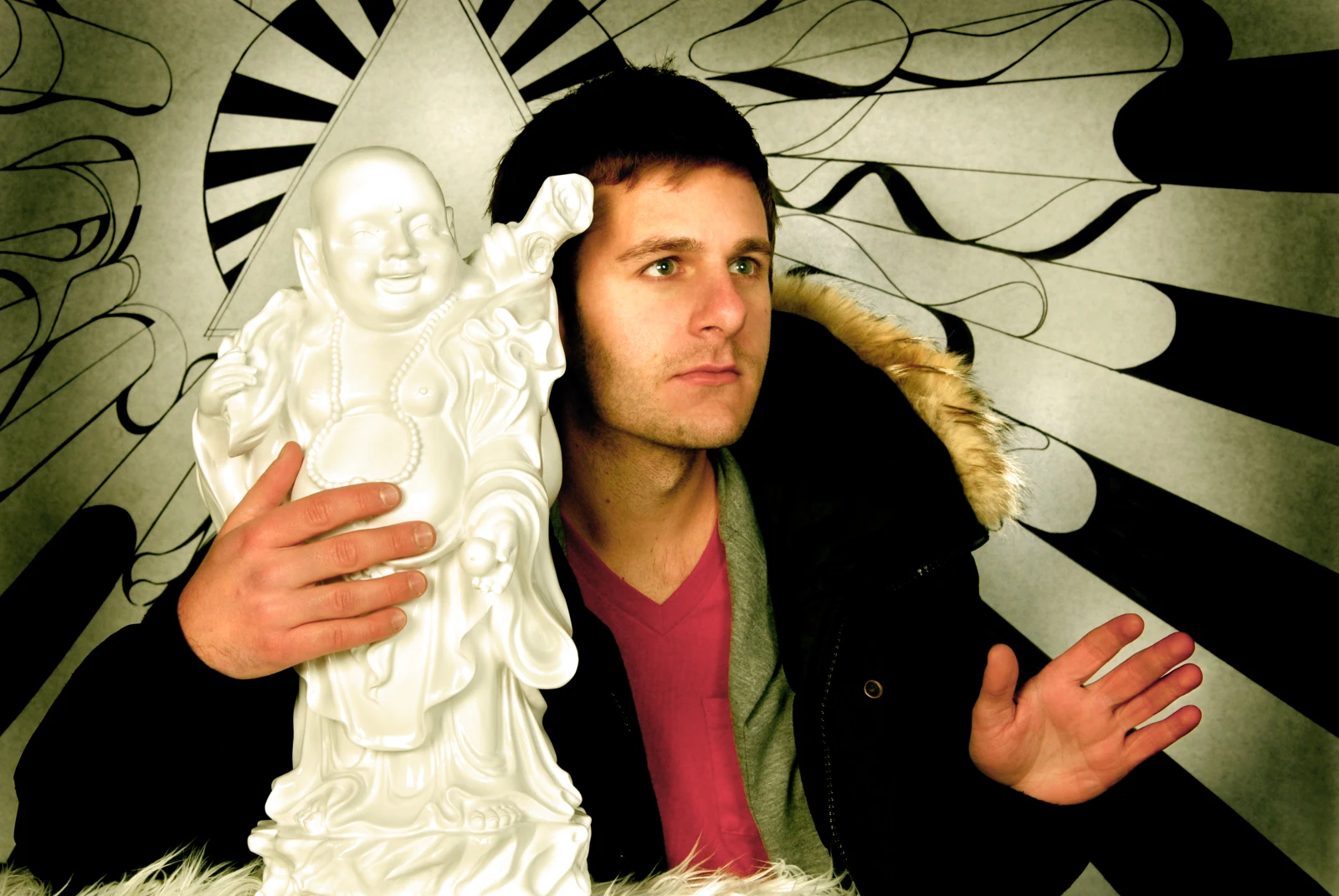 On a cherché longtemps pour trouver un concept qui fittait avec le lancement de notre numéro Gros. Se déguiser en Obélix? En PFK Kid? Faire des câlins à un gros célèbre? À la fin, on s’est dit que Buddha était une rock star pas pire dans le monde des gros. Même si là, il est plutôt petit.