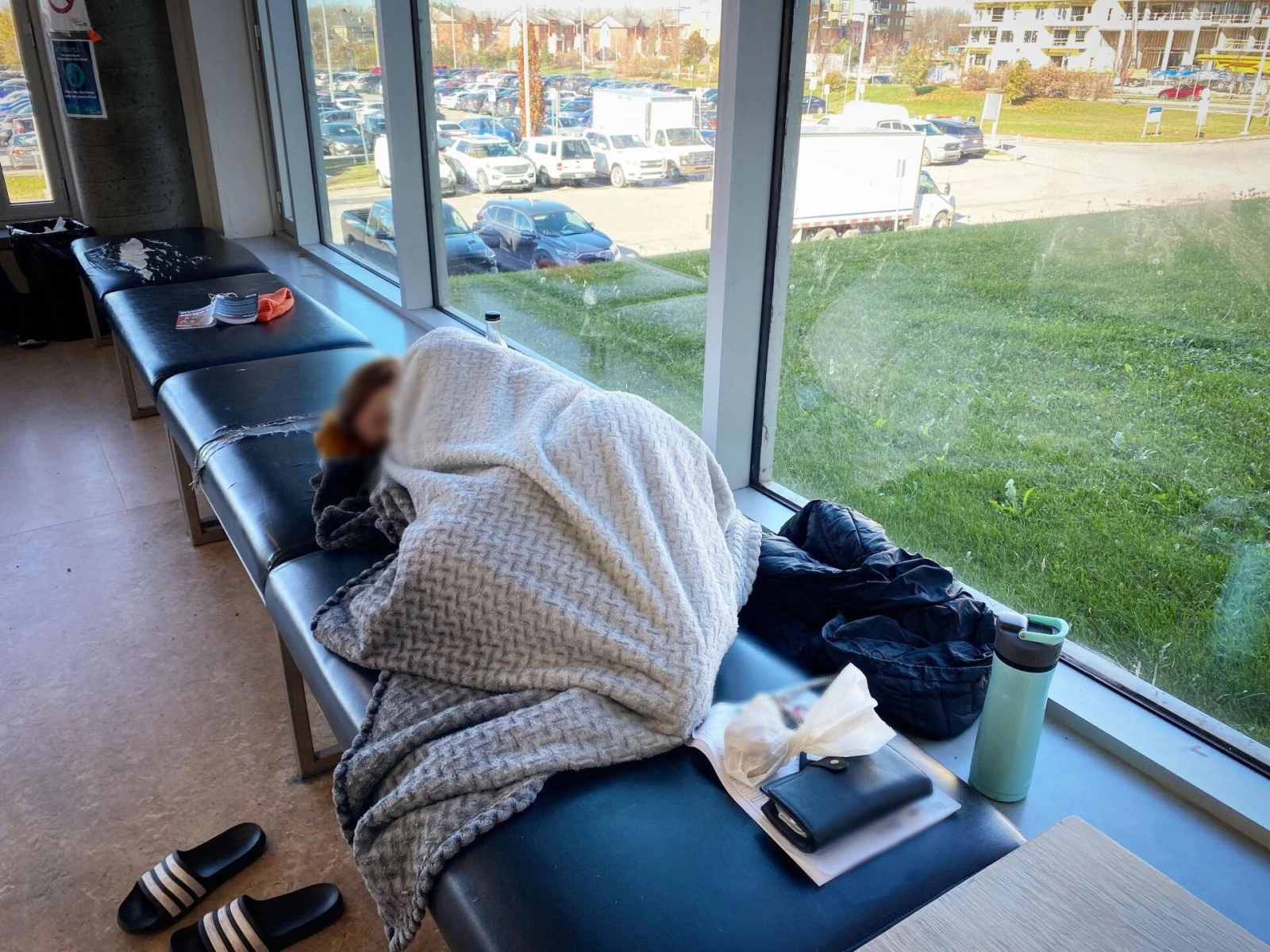 La maman se réveille, s’étire et s’approche de moi pour renchérir en chuchotant. « On est dans le flou. La petite a fait un délirium ou quelque chose du genre, ils ne savent pas. On doit dormir ici, mais personne ne nous donne de nouvelles. Ça a l’air grave, mais on nous laisse poireauter! », peste-t-elle, les traits fatigués.