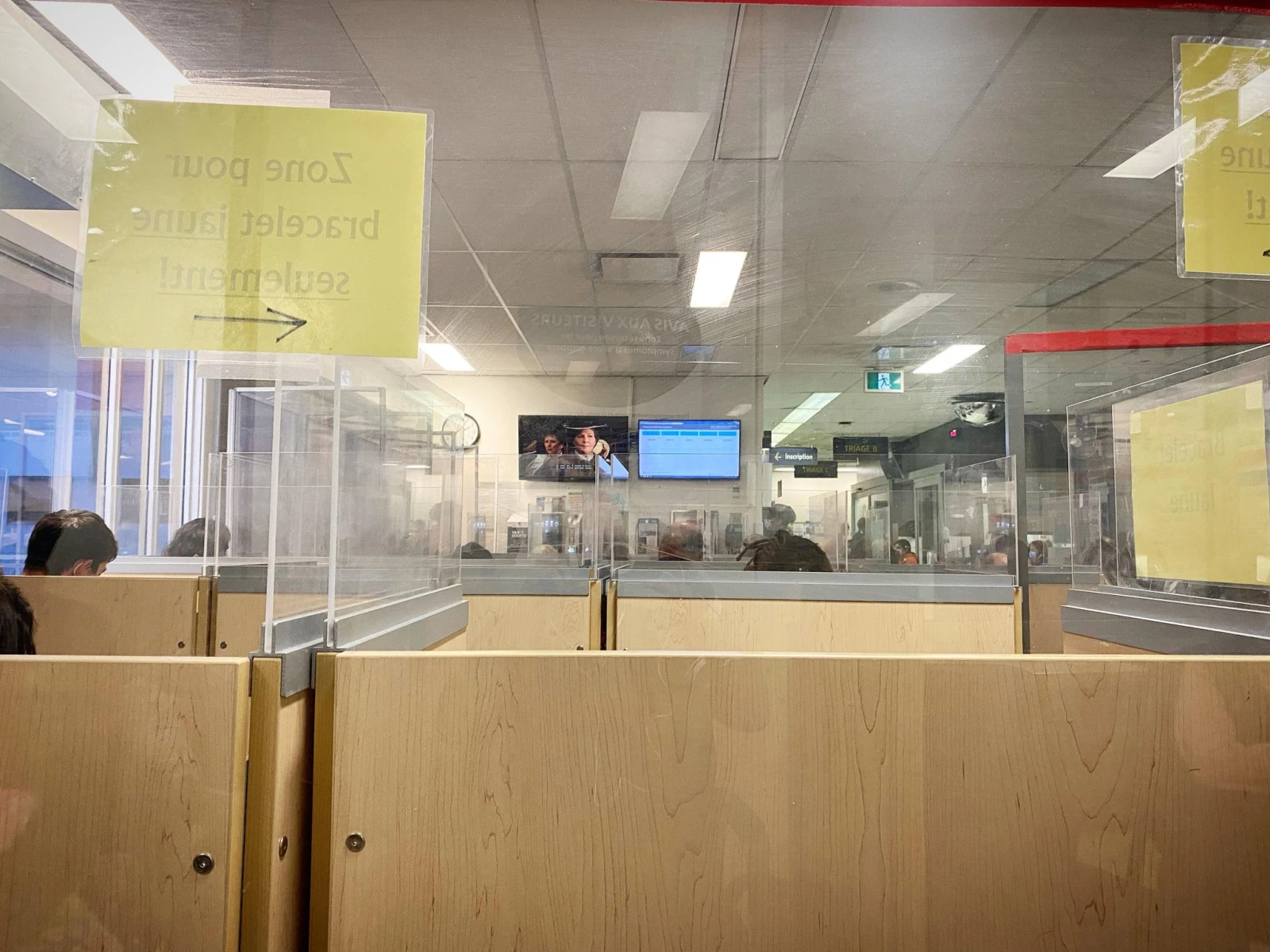 On me donne finalement un bracelet jaune en attendant un triage plus approfondi auprès d’une infirmière. D’ici, on m’oriente vers une section de la salle d’attente correspondant à ma couleur.