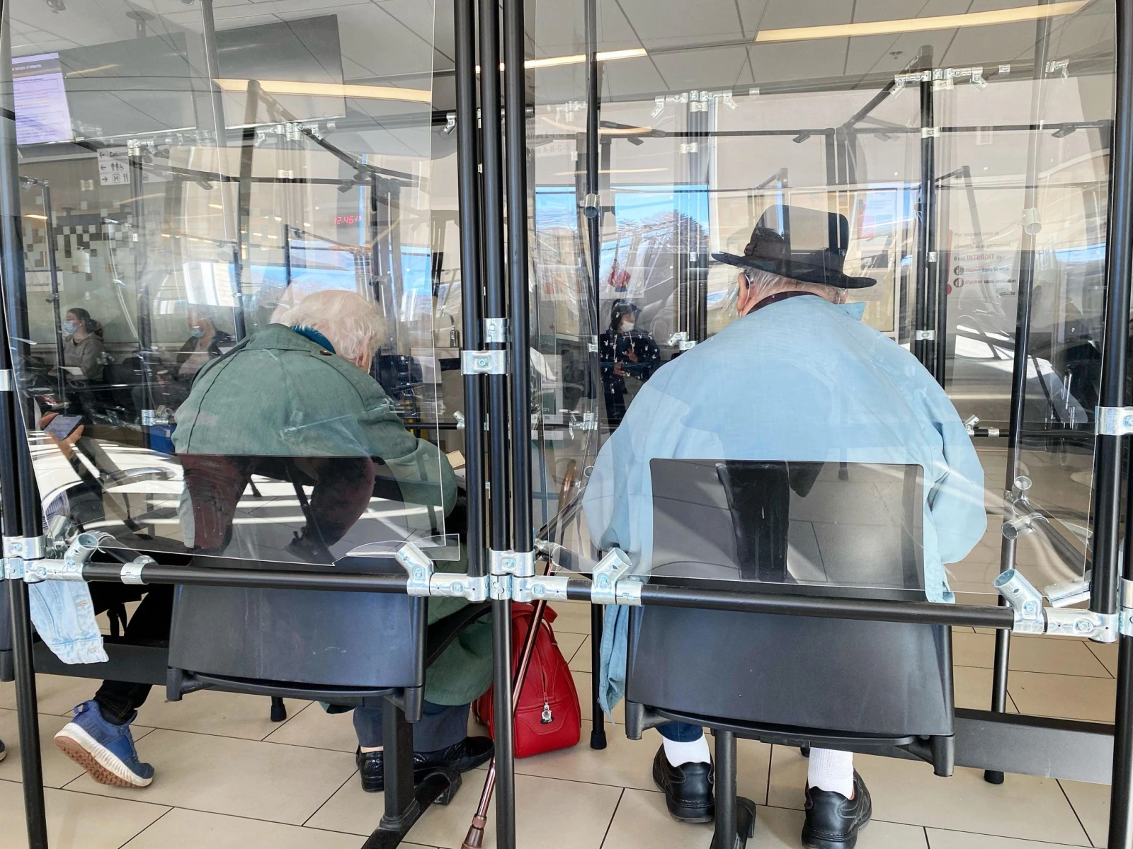 Un couple extrêmement âgé, dont la dame se déplace de peine et de misère derrière une marchette, entre dans la salle. La scène fait pitié à voir.