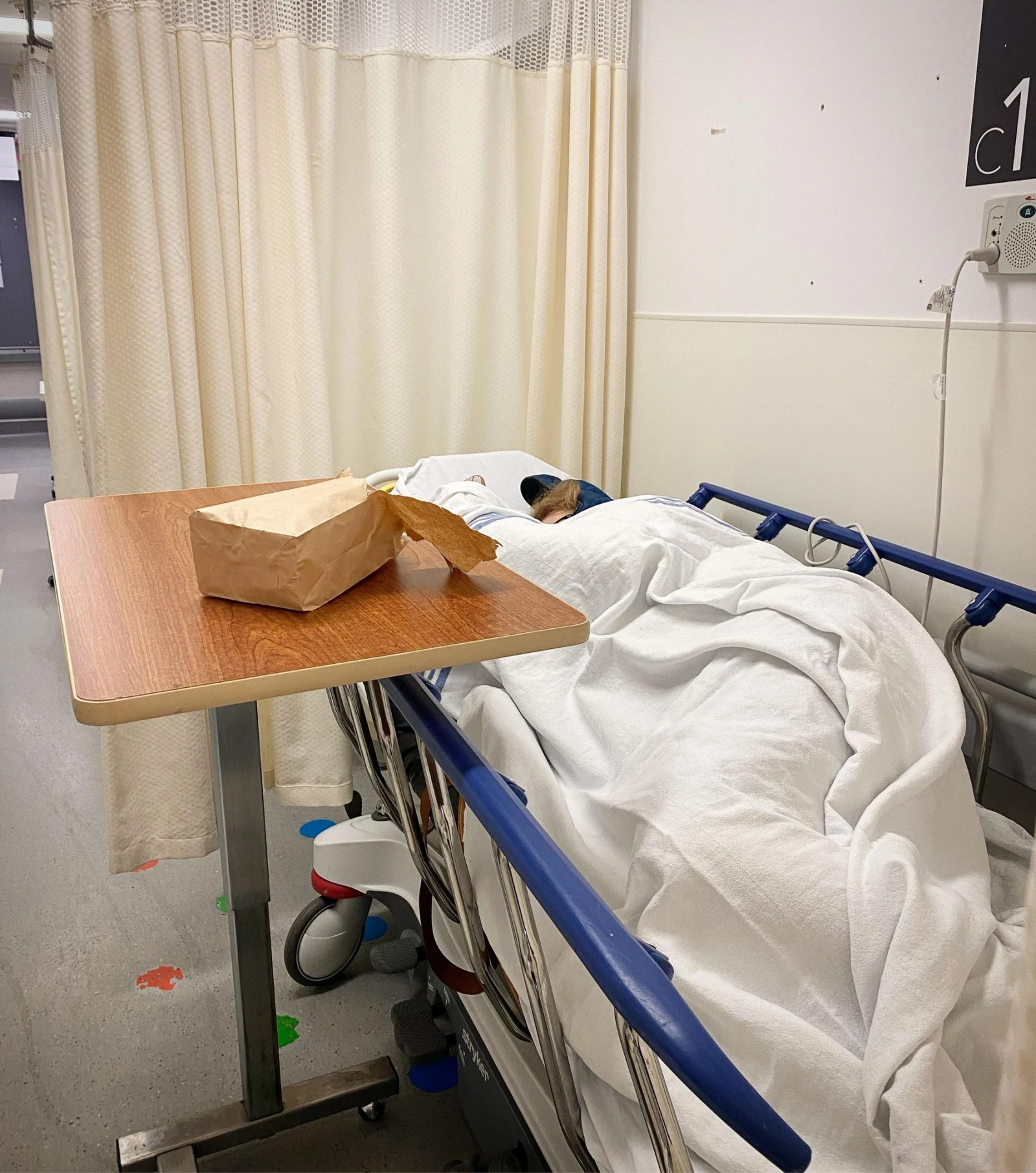 Comme Caro, qui se fait dire qu’elle devra passer la nuit sur une civière (sans couverture aussi) après une réaction allergique à un antibiotique.