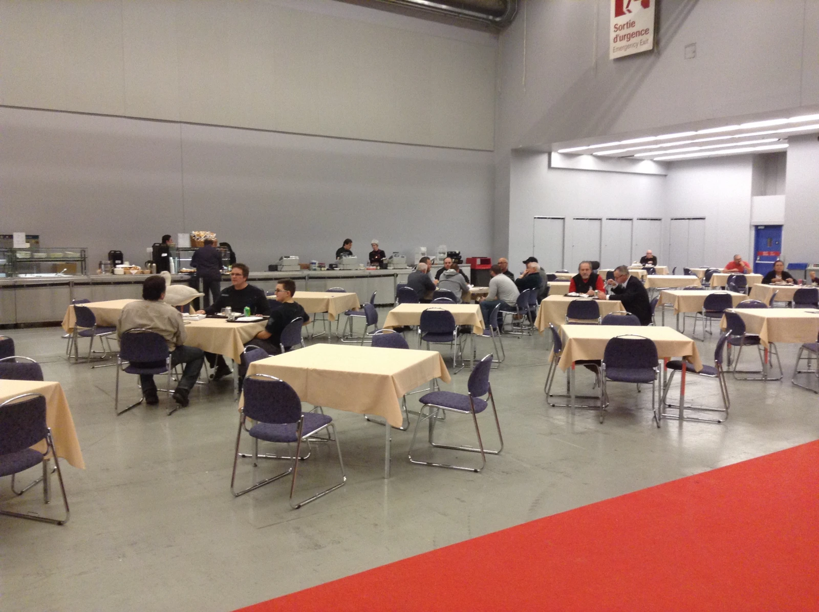 Vers 18h30, la cafétéria se remplit pas pire, malgré la pointe de pizza à 6,50$.