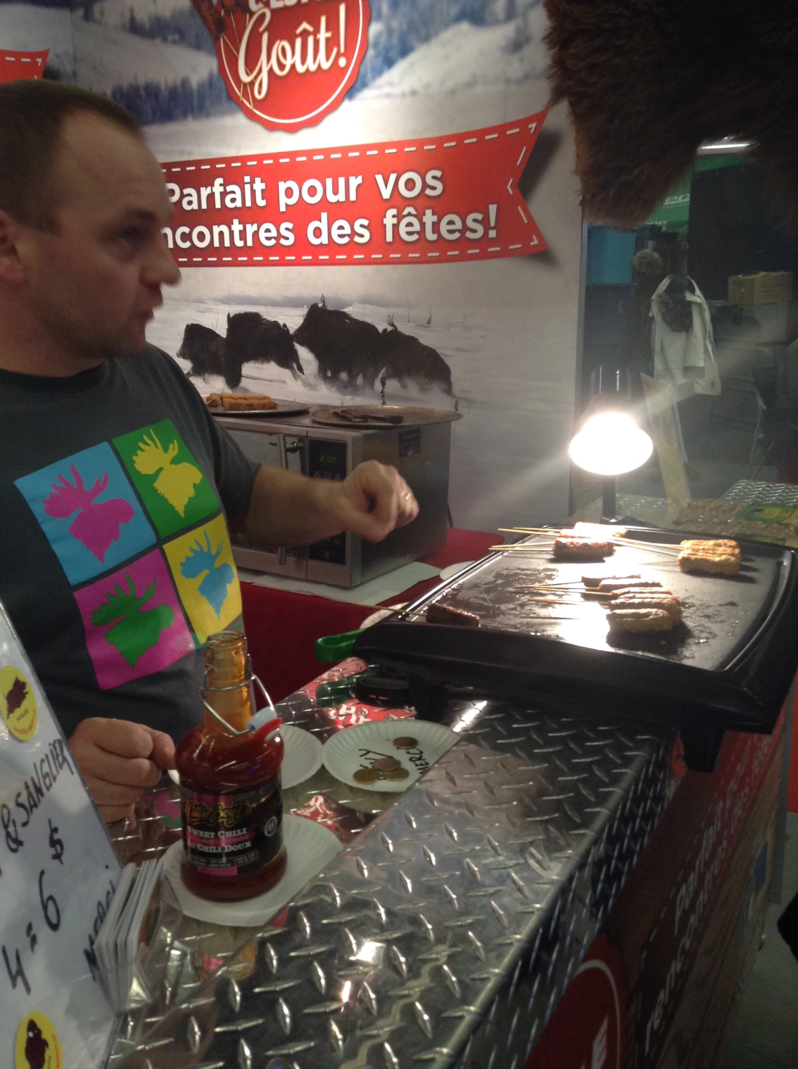 Reste que le king de la bouffe, c’est ce gars-là avec ses mini-brochettes de sanglier et de bison grillées à 2$.