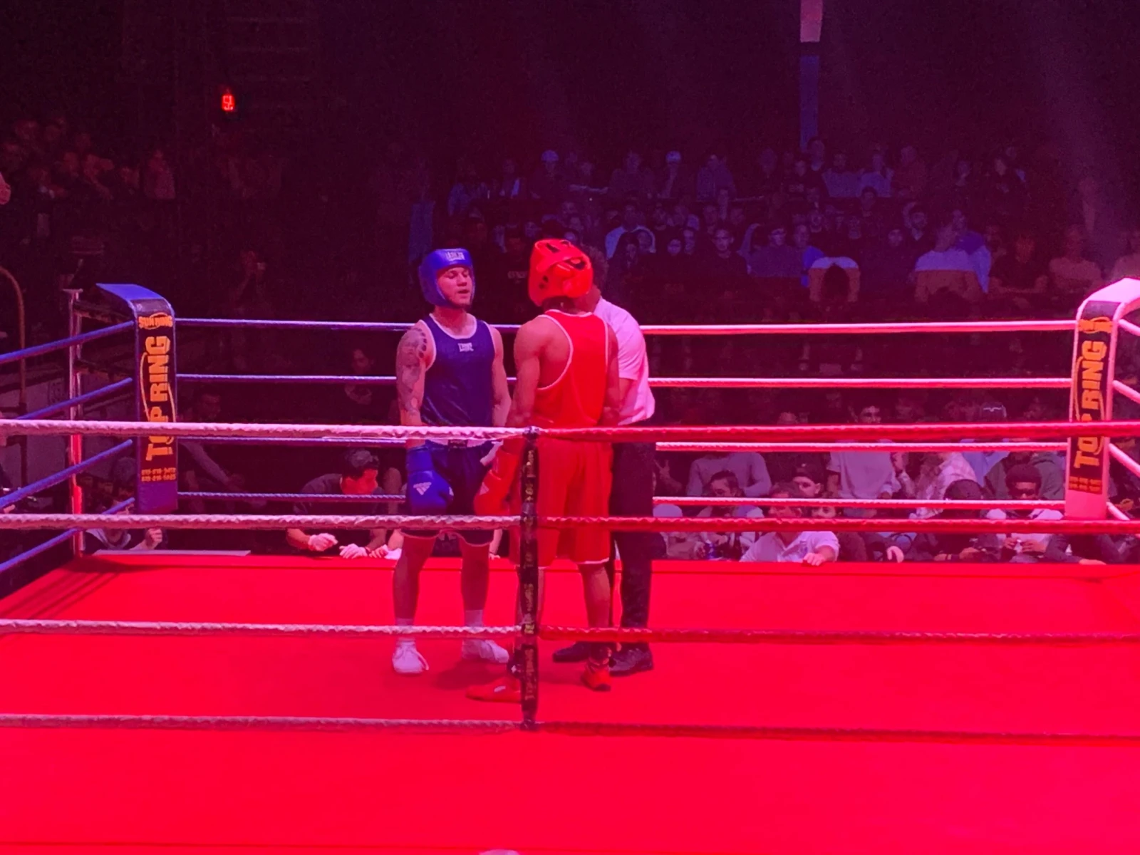 C’était de la boxe de débutants. Il y a eu quelques moments gênants dans la soirée, mais la Fédération Québécoise de Boxe Olympique était là pour veiller au bon déroulement et surtout, à la santé des combattants. La première partie du spectacle consistait en cinq combats de boxe olympiques dits « normaux » entre non-influenceurs et, dès le premier affrontement, l’arbitre a mis les choses au clair en décernant un compte de huit debout à un boxeur qui avait établi comme stratégie de bloquer les coups avec son visage. Pour les néophytes, il s’agit d’une pause où l’arbitre agit comme s’il y avait eu chute au plancher.