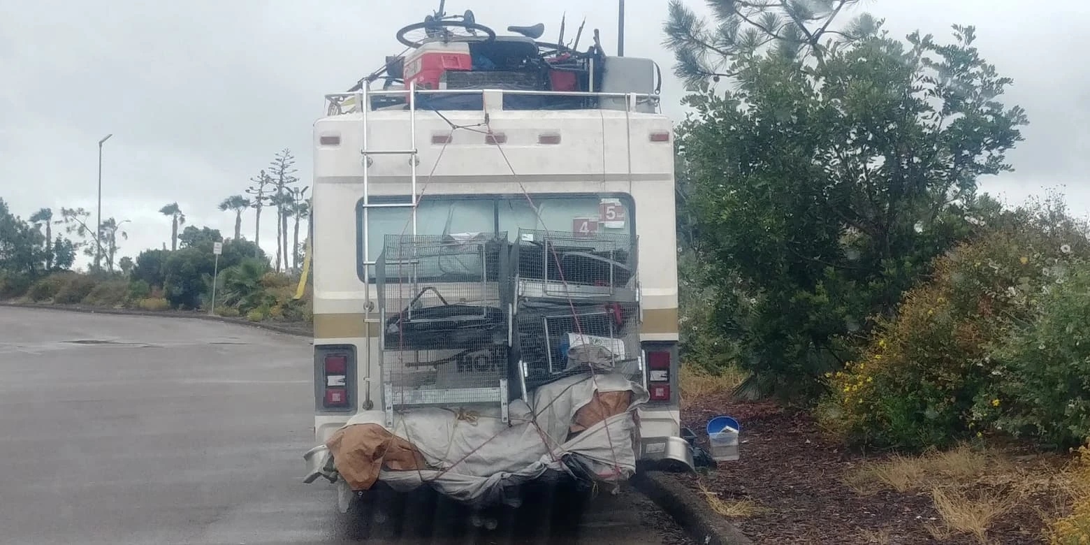 Oui ça fait partie de l’aventure, mais ça arrive en fin de parcours et ça nous oblige à développer des nouvelles astuces. On est rendus champions dans le bundocking, aka dormir dans la rue. Nos skills de lecture de pancartes de stationnement (de « non stationnement », plus souvent qu’autrement) sont de niveau olympique. En théorie, on n’a pas le droit de dormir dans un véhicule en Californie. En pratique, on le fait tous les soirs. John Mel &Camper fait partie d’une vraie communauté ici. Wikipédia m’apprend que plus de 9 000 Californiens vivent à temps plein dans un véhicule. Ça fesse. Oui, y’a des super cutes surfers de 20 ans les cheveux bleachés qui vivent dans leur van. Moi aussi j’aimerais mieux ne pas faire dans le cliché, mais qu’est-ce tu veux, ils sont cutes, ils ont 20 ans ET les cheveux bleachés, je le sais, je les ai vus ! Mais il y a aussi le clash des « presque » sans abris qui vivent dans leur motorisé. Stationnés toujours au même endroit, du stock empilé plein le toit, comme s’ils avaient dû fuir leur ancienne vie.