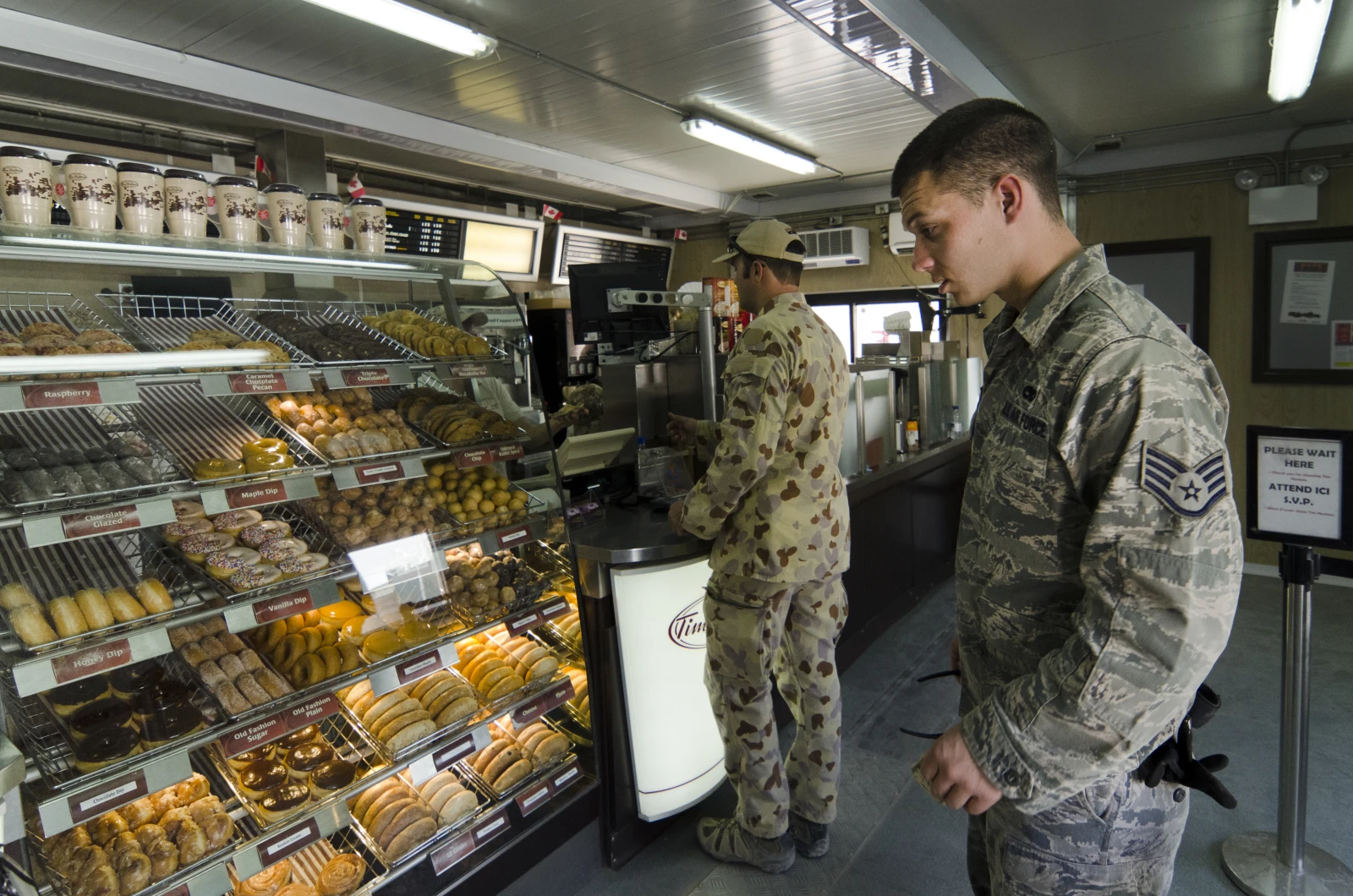 À Kandahar, le charme du Tim opérait aussi auprès des Belges et des Français, séduits par le service francophone. Les Américains craquaient pour les Boston Cream et les Anglais, ironiquement, pour ses Vanilles françaises : “Les gens attendaient chaque jour trente minutes, voire une heure, en file. La machine à cappuccino glacé ne fournissait pas et il fallait même imposer des quotas sur les beignes Canadian Maple!“