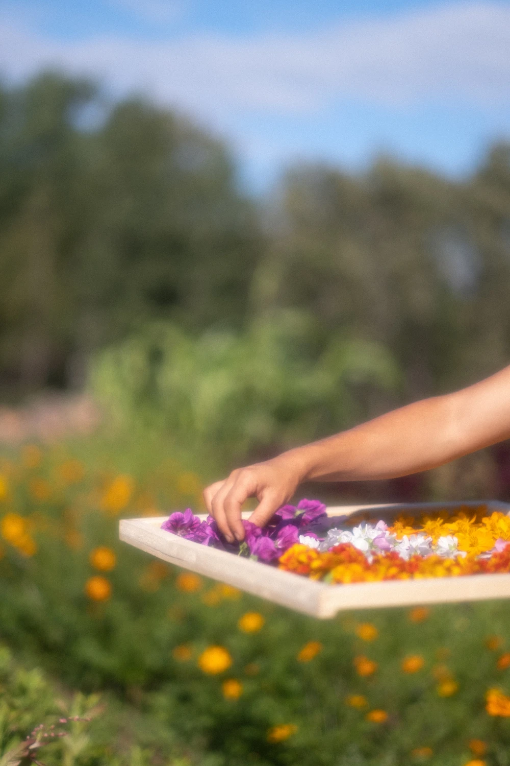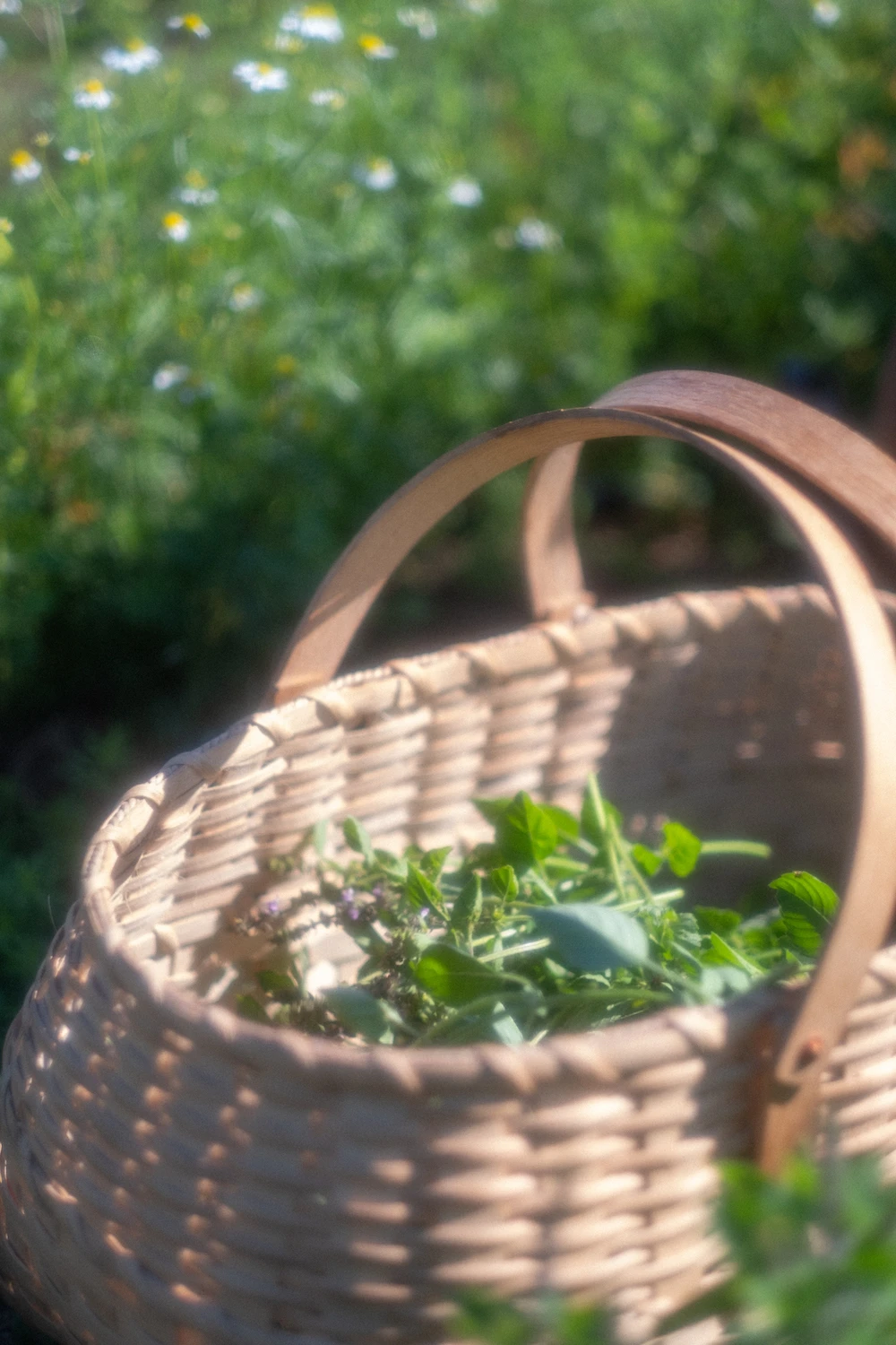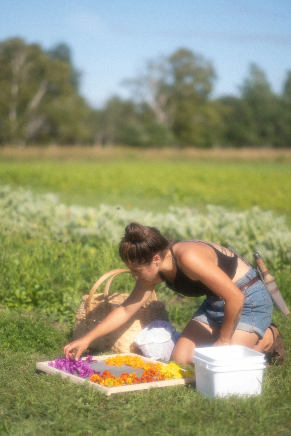 Sur la bande-son du vent et du chant des insectes, le parfum tonique de la camomille allemande, de la mauve musquée et du basilic sacré au nez, elle passe de longues journées accroupie dans son jardin, à récolter tout ce dont elle aura besoin pour la saison.