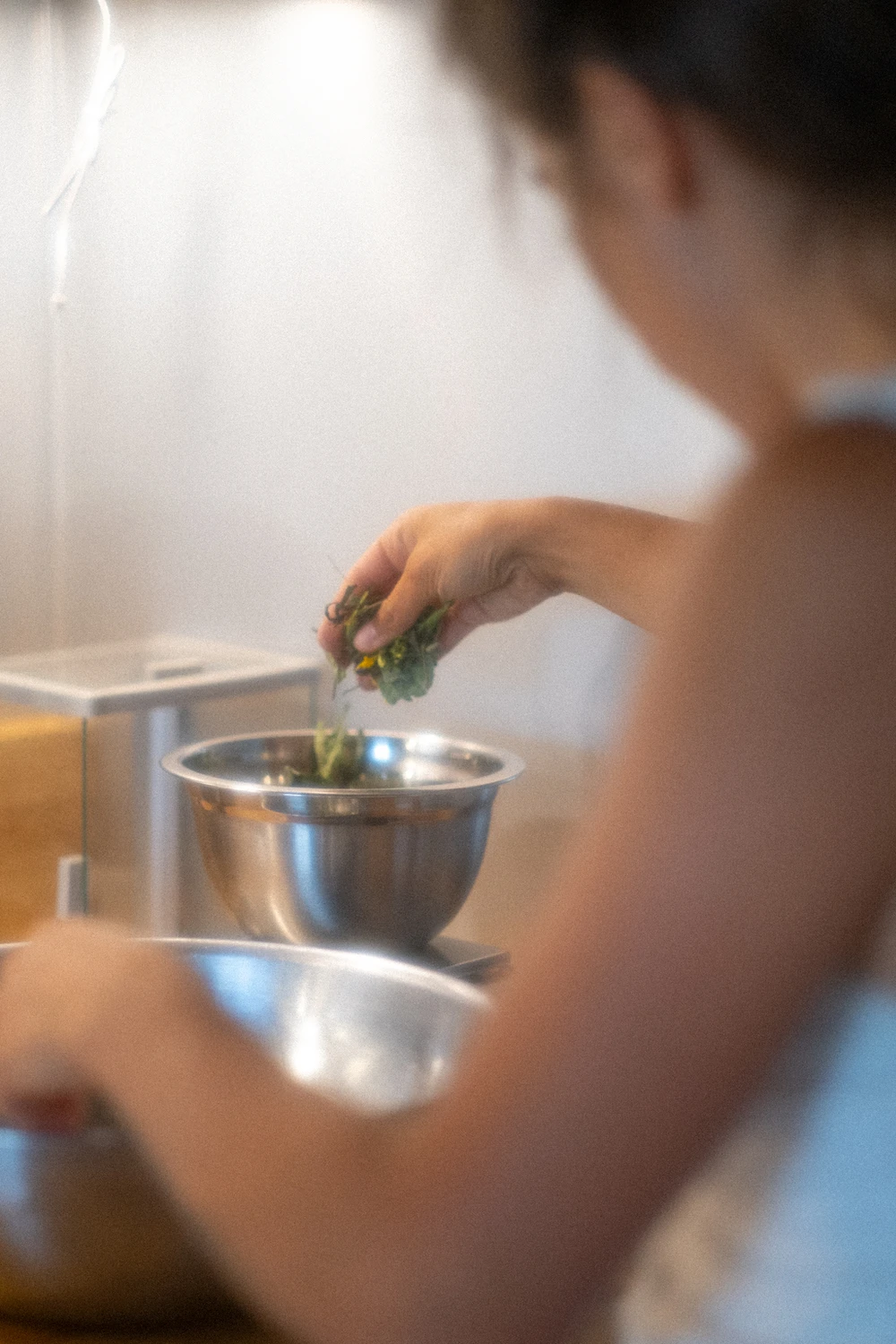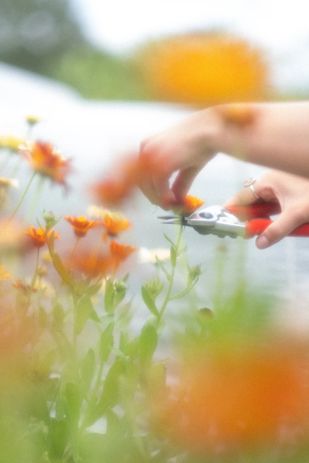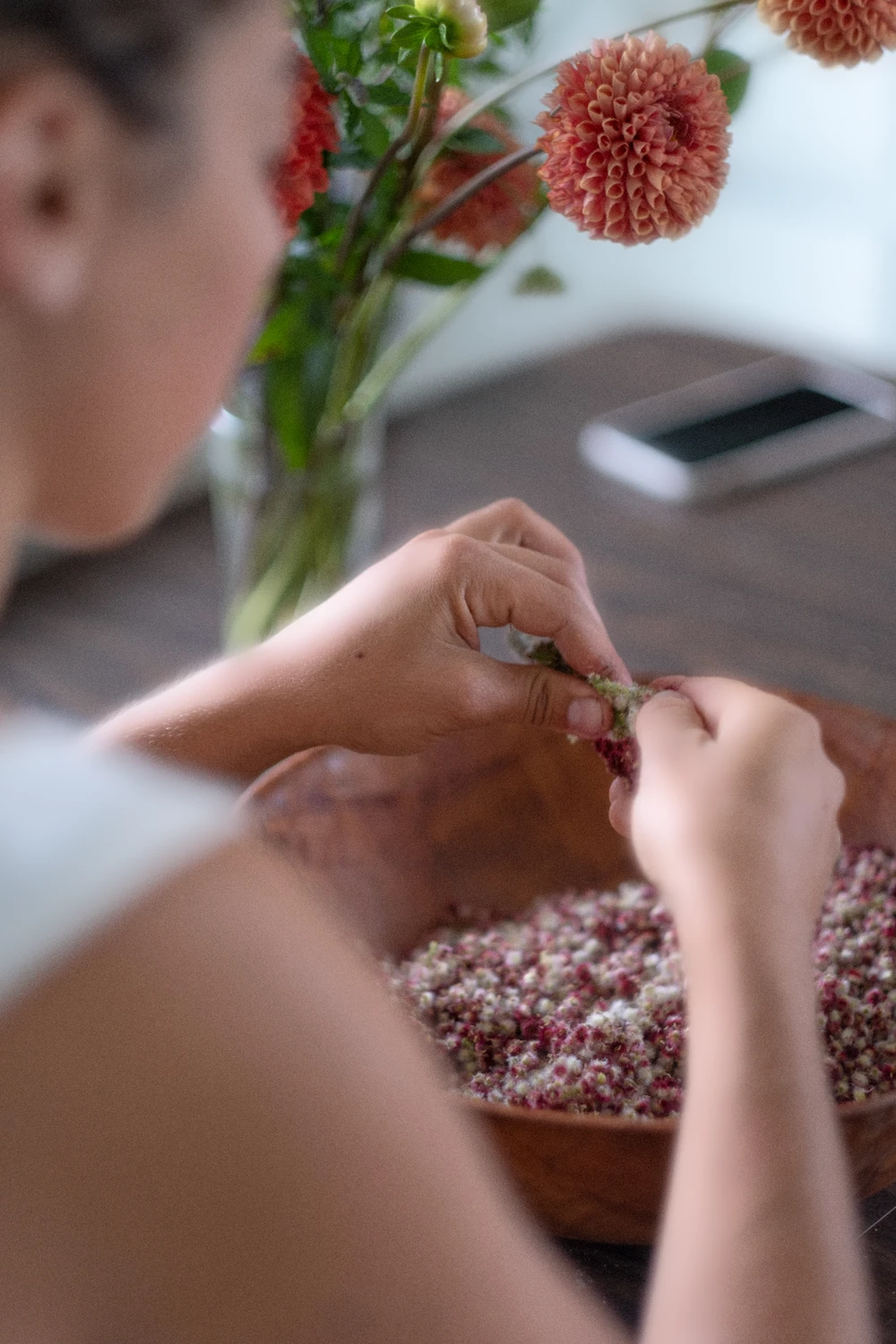 Sur la bande-son du vent et du chant des insectes, le parfum tonique de la camomille allemande, de la mauve musquée et du basilic sacré au nez, elle passe de longues journées accroupie dans son jardin, à récolter tout ce dont elle aura besoin pour la saison.