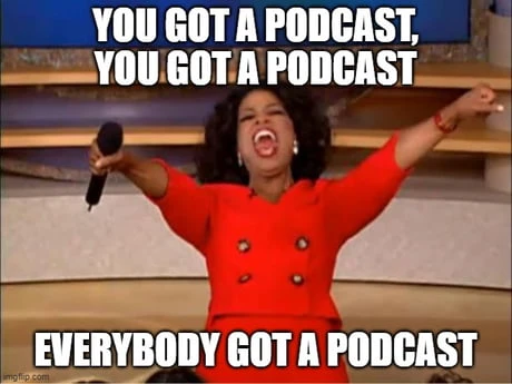 On devine souvent un trend qui s’essouffle aux mèmes qui encerclent son cercueil. Les premiers que j’ai vus émerger concernant le podcast restaient toutefois de l’ordre gentillet du running gag. Ici, l’humour reposait principalement sur le fait que le monde entier ait fini par succomber à l’appel du microphone, tout domaine de carrière confondu — nos artistes préféré.e.s, les créateur.rice.s de contenu sur nos fils Instagram, nos président.e.s et ministres, nos chauffeur.euse.s Uber et même notre propre petit frère passionné de Fortnite.