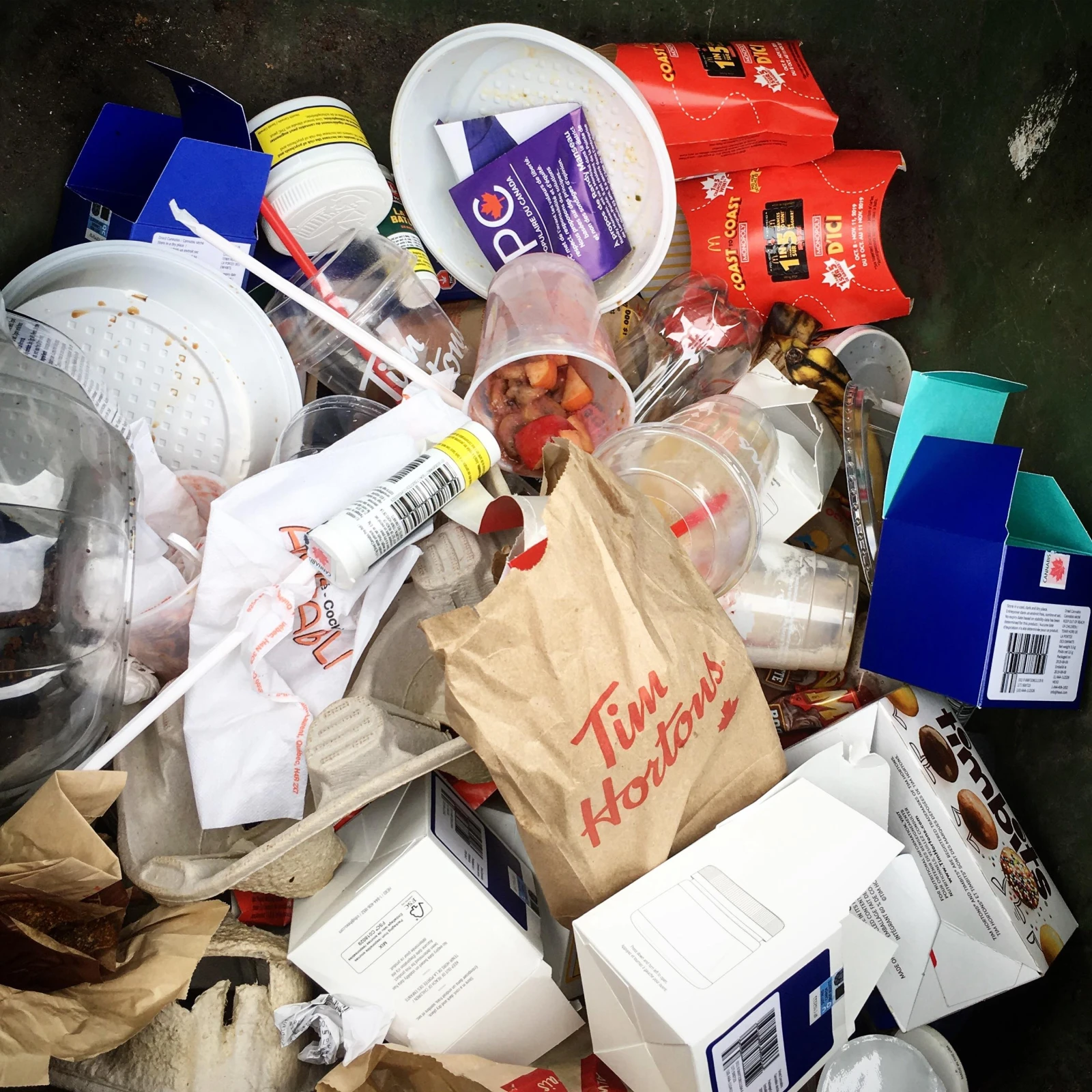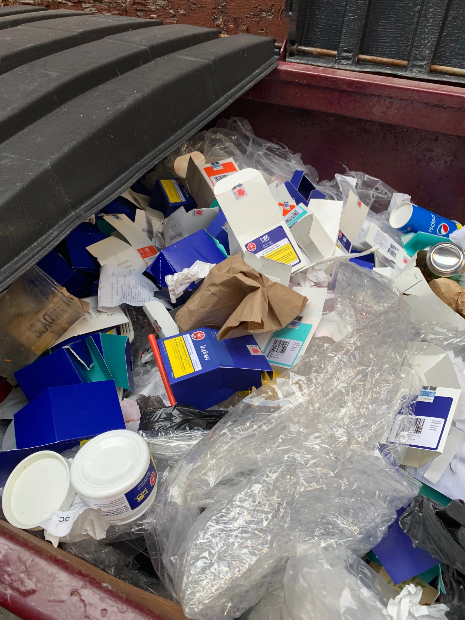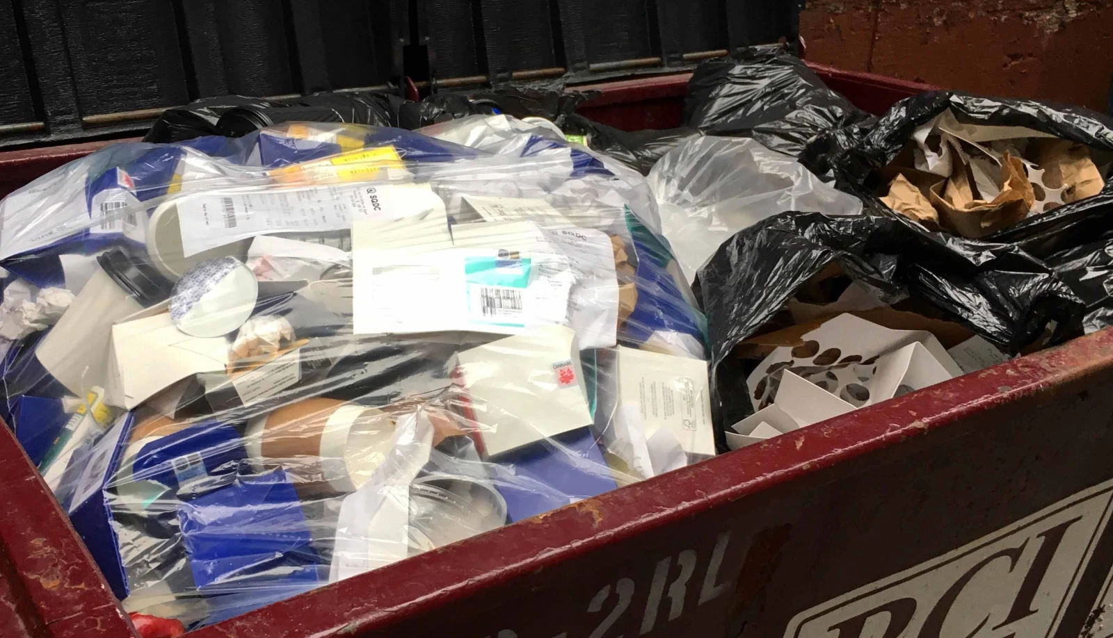 Si la SQDC s’est défendue dans le passé de n’avoir aucun contrôle sur le suremballage des produits de leurs fournisseurs, ça serait la moindre des choses de s’assurer que les contenants, factures et autres matières recyclables ne se retrouvent pas avec les ordures, non?