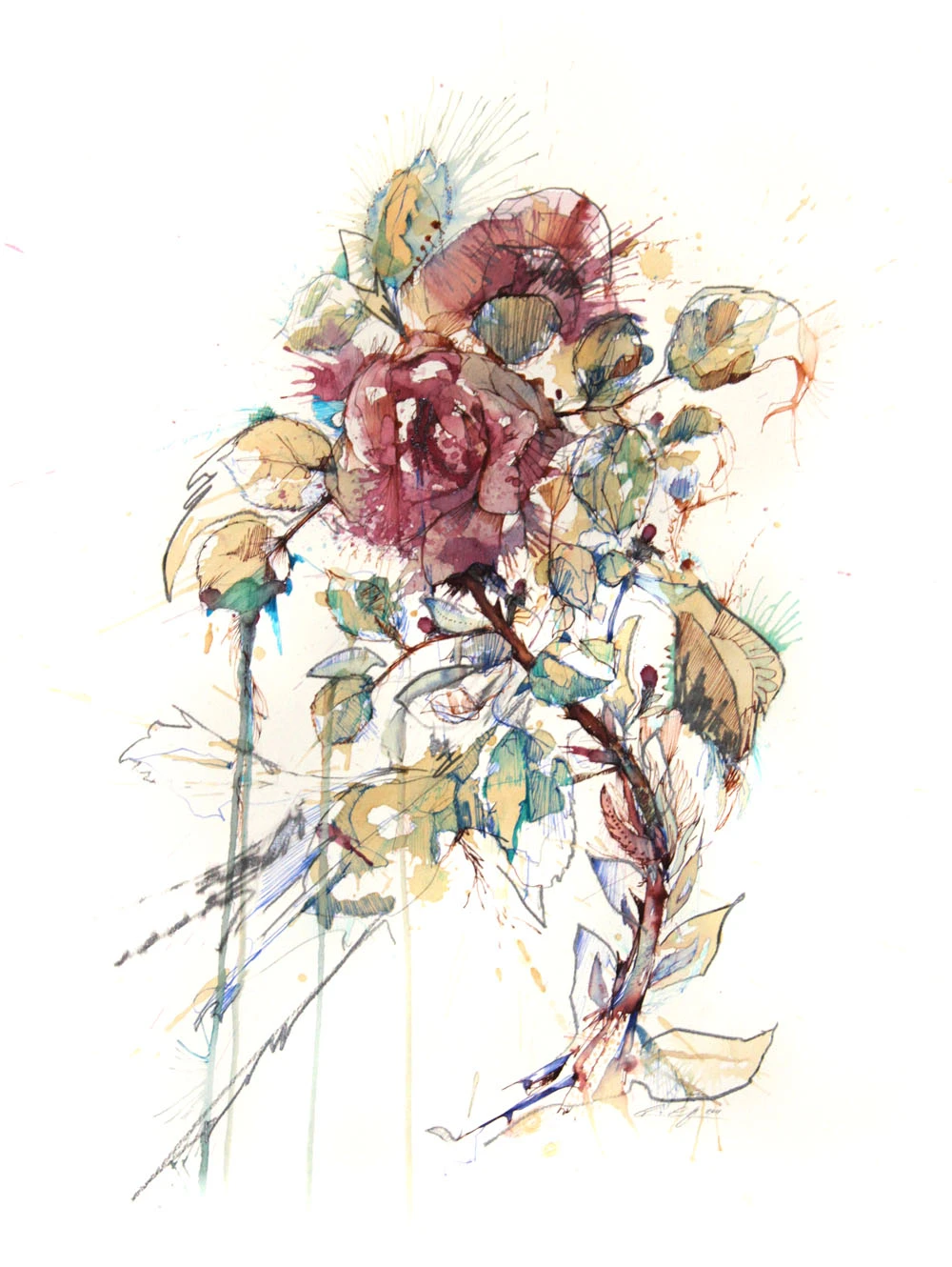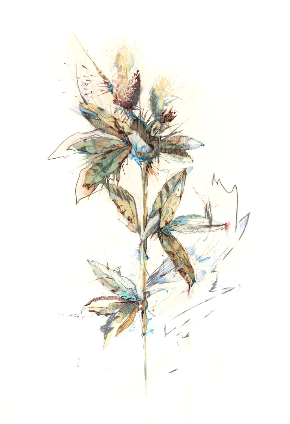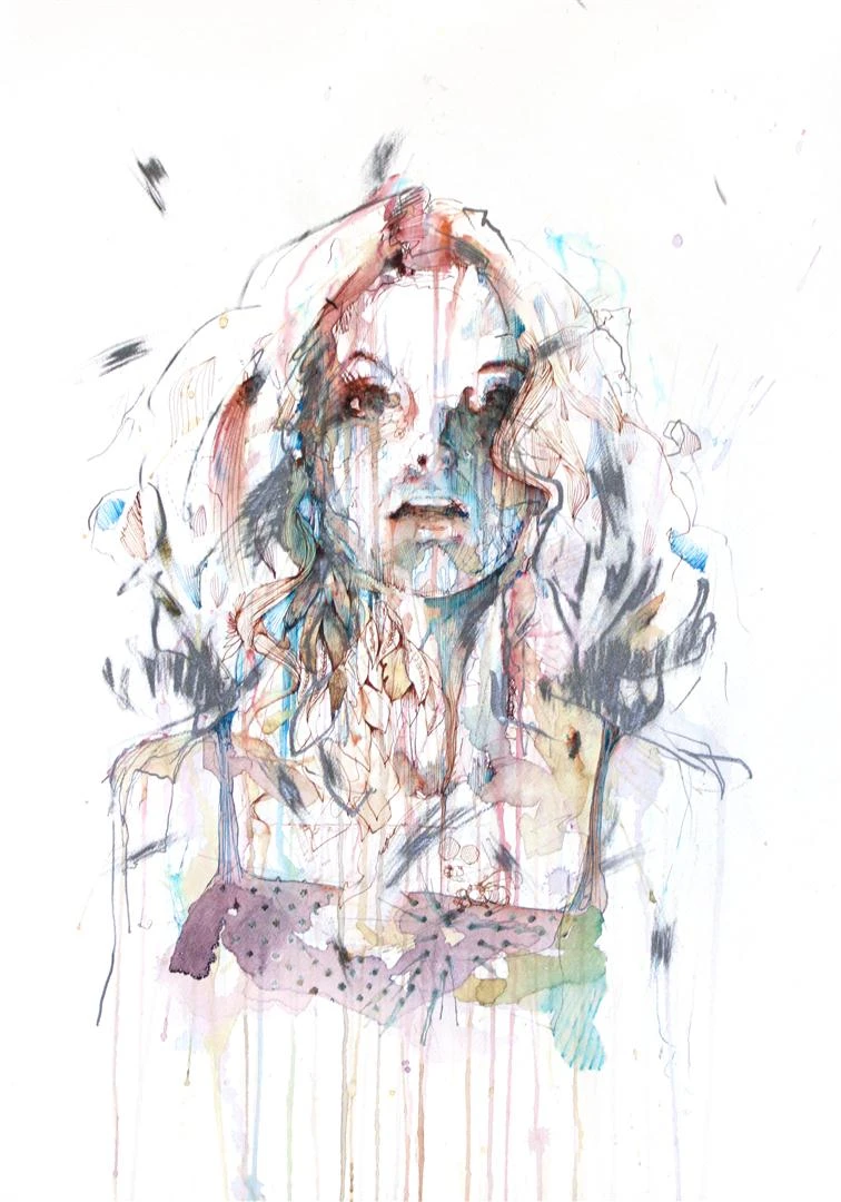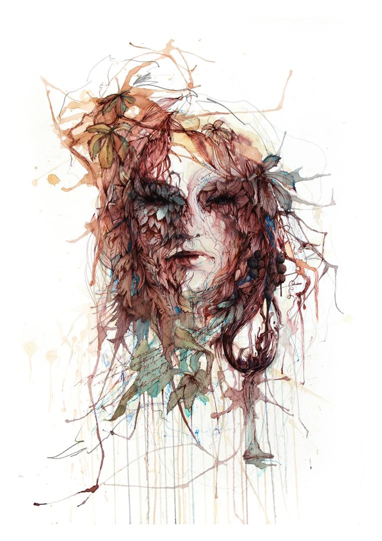 L’artiste anglais Carne Griffiths travaille principalement avec de l’encre de calligraphie et des liquides, comme le brandy, la vodka et le whisky. Fasciné par les «lignes invisibles», il crée des oeuvres qui explorent les formes humaines et florales. (www.carnegriffiths.com)