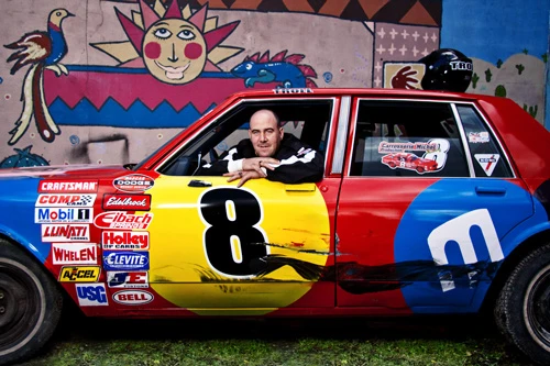 C’est au volant de son vieux bolide multicolore que Stéphane, alias Troll, participe à des courses automobiles à l’Autodrome Saint-Eustache. Entretien avec un coureur automobile qui incarne la vélocité polychrome.
